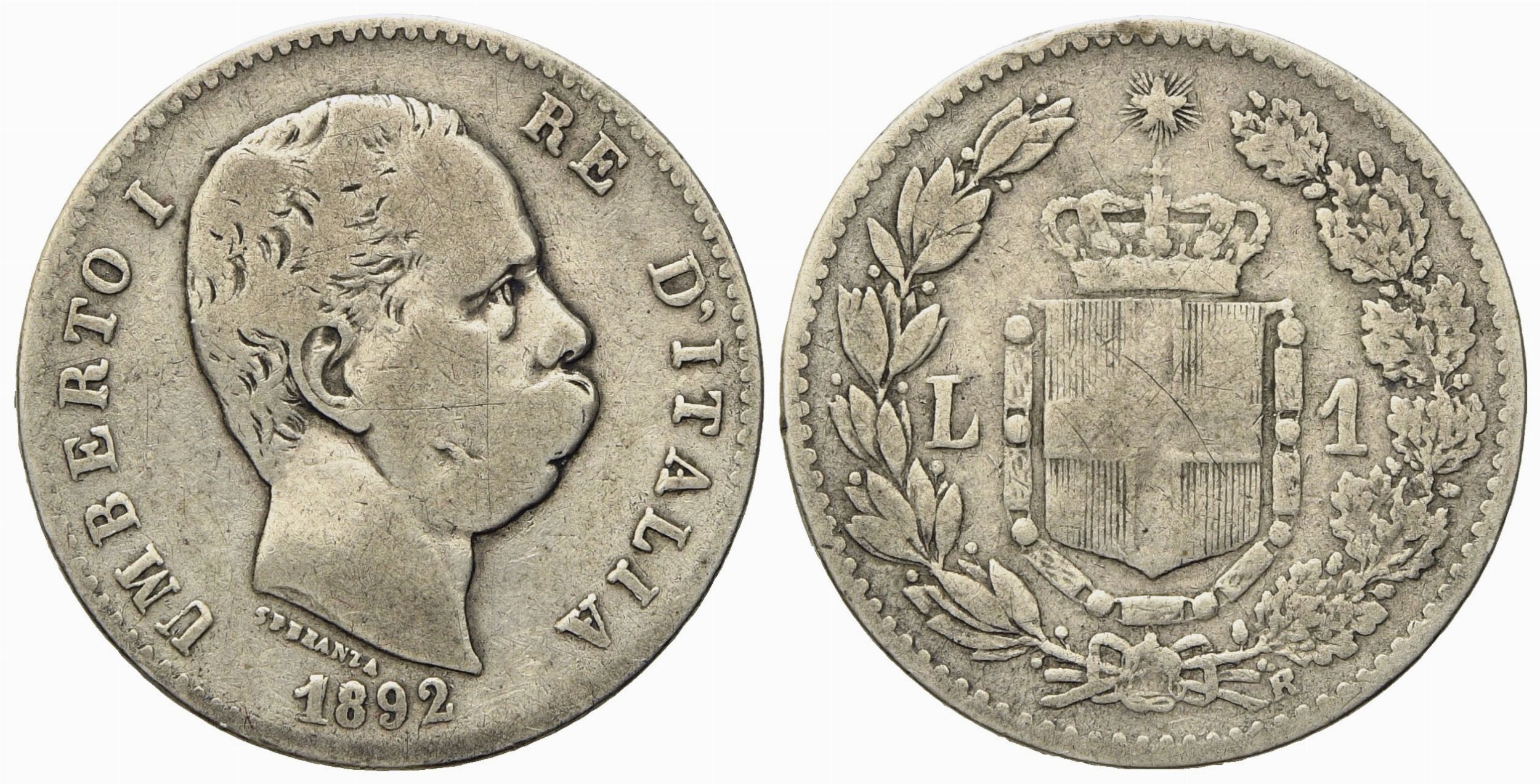 REGNO D'ITALIA. Umberto I (1878-1900). 1 Lira 1892. Ag (4,83 g; 22,8 mm)