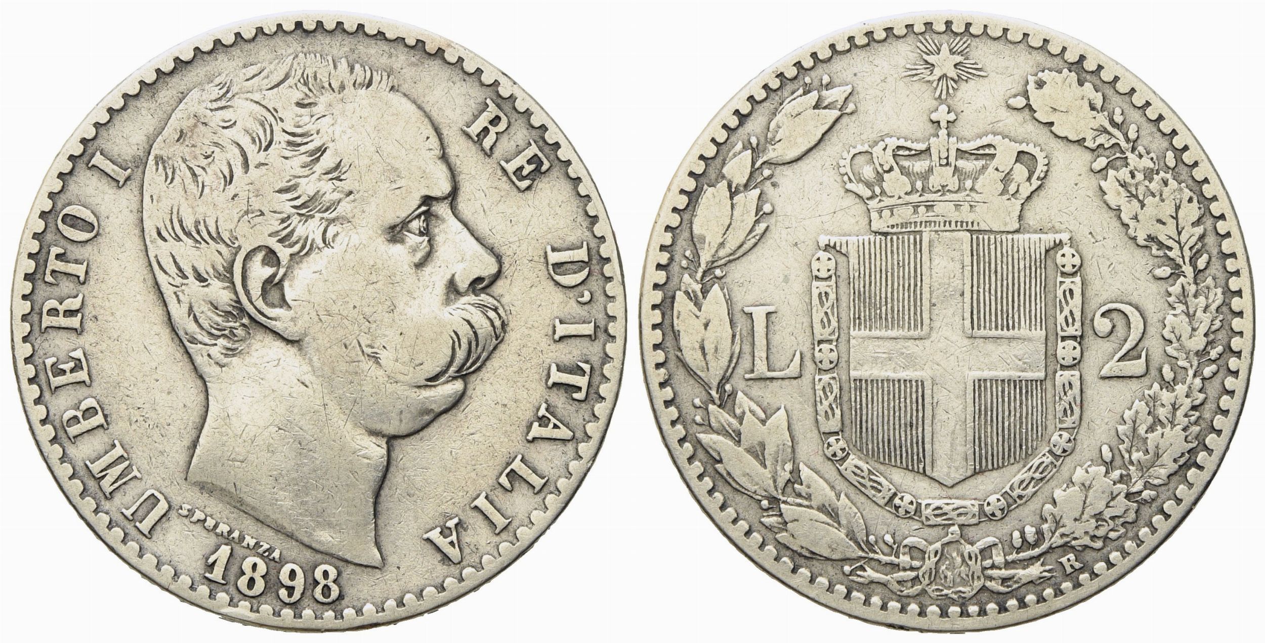 REGNO D'ITALIA. Umberto I (1878-1900). 2 Lire 1898. Ag (9,78 g; 27 mm)