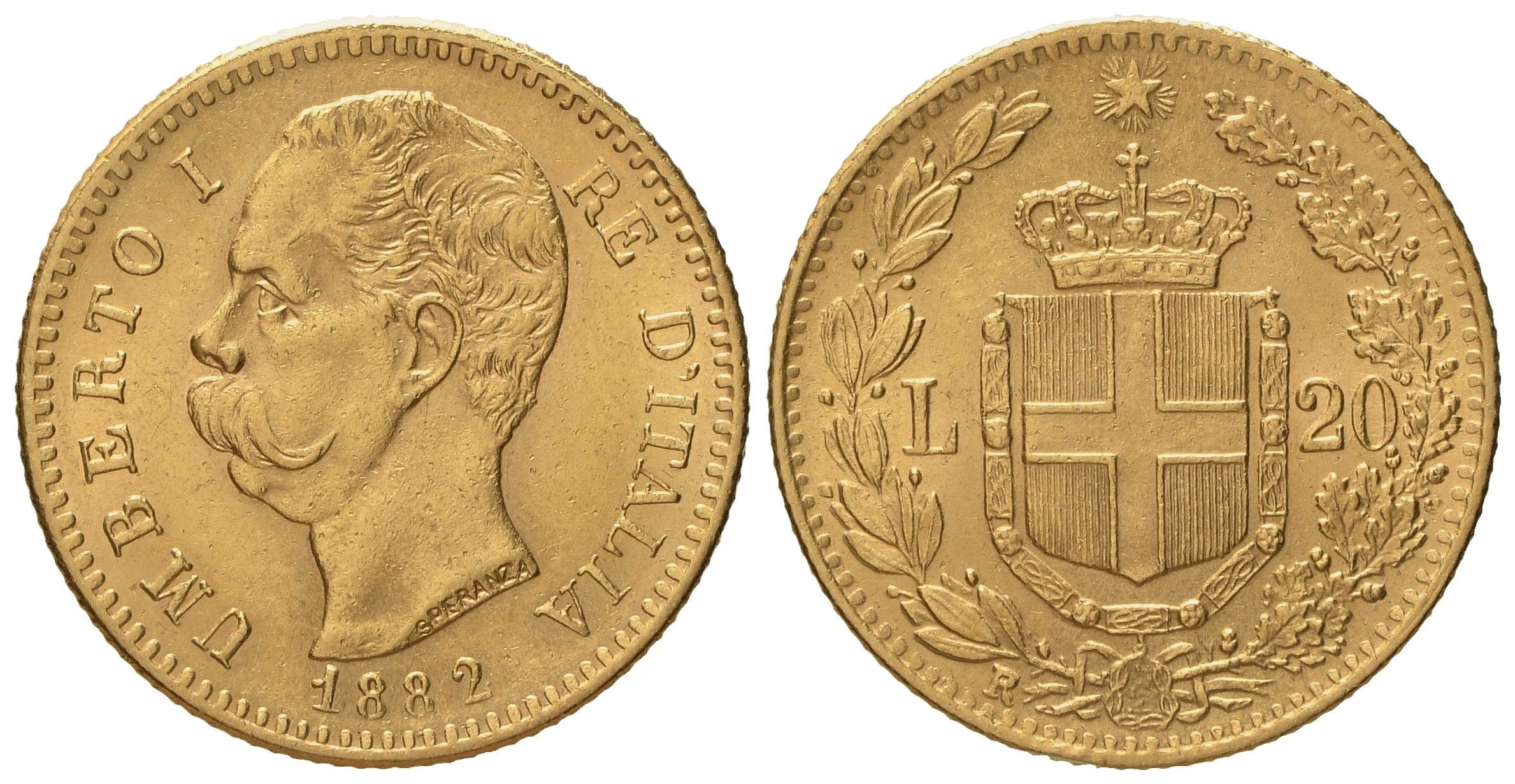 REGNO D'ITALIA. Umberto I (1878-1900). 20 Lire 1882. COPIA in Au (titolo 750?) (6,43 [..]