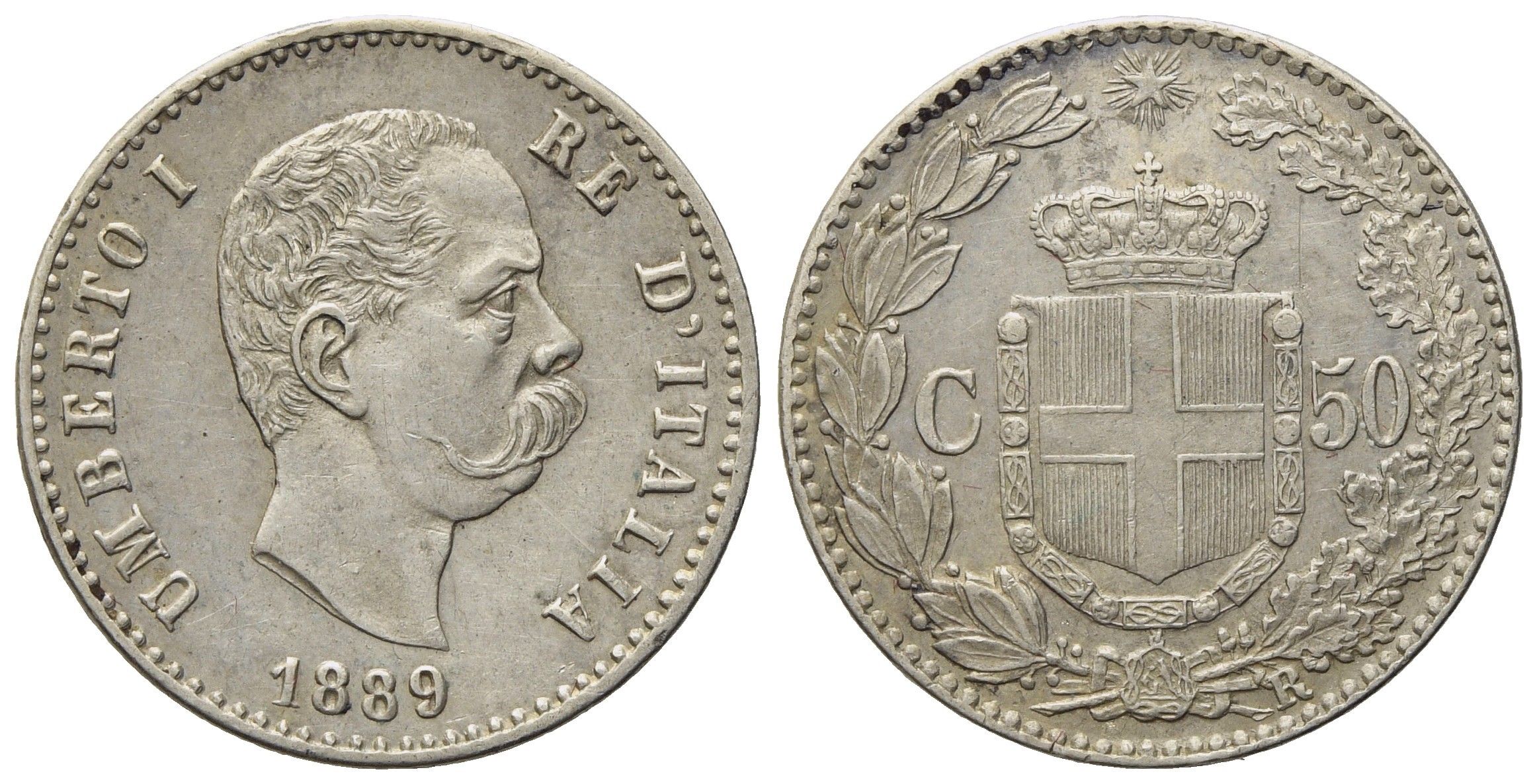 REGNO D'ITALIA. Umberto I (1878-1900). 50 centesimi 1889. Ag (2,51 g; 18,21 mm)