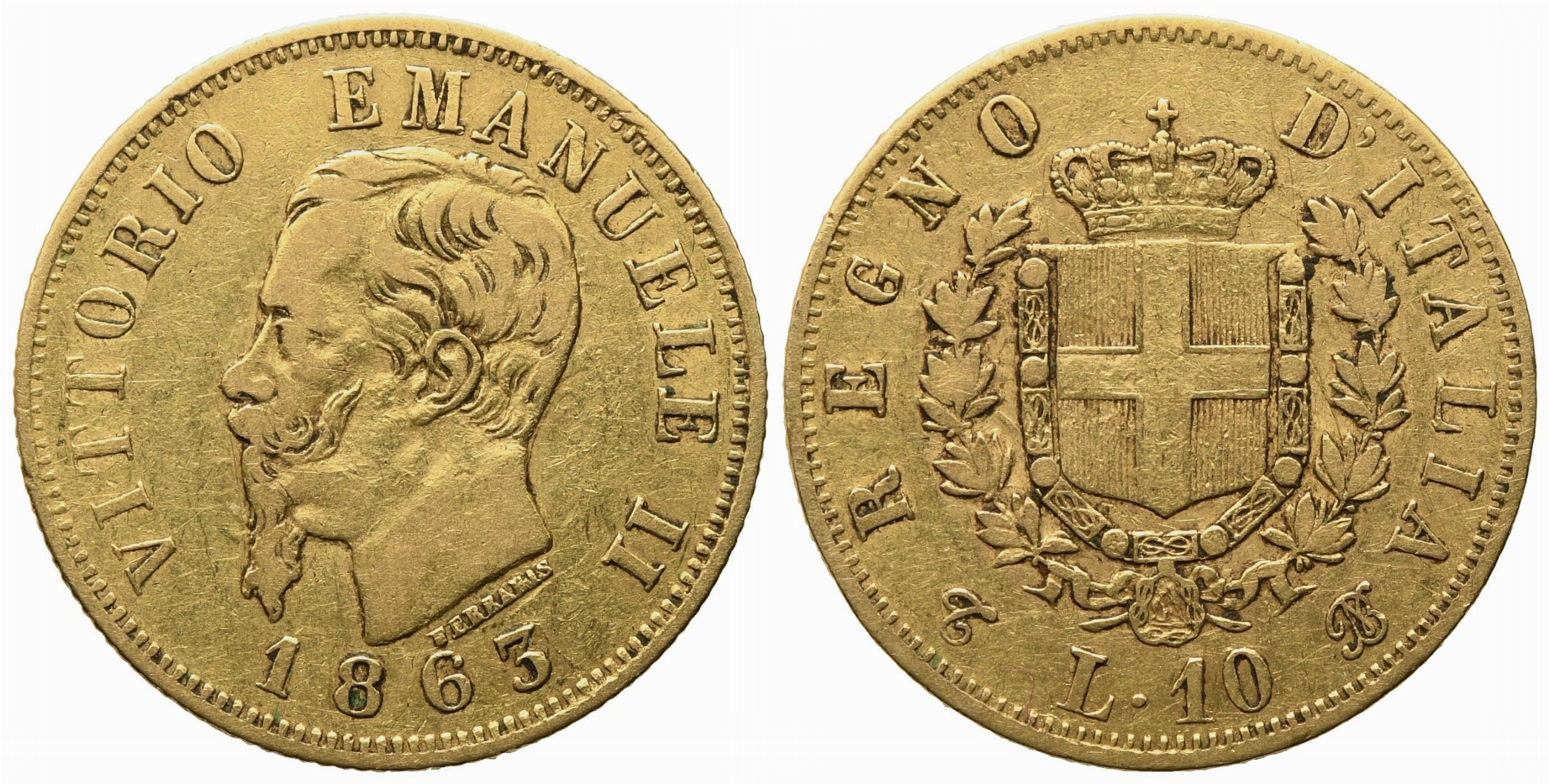 REGNO D'ITALIA. Vittorio Emanuele II (1861-1878). 10 lire 1863. Torino. Au (3,18 [..]