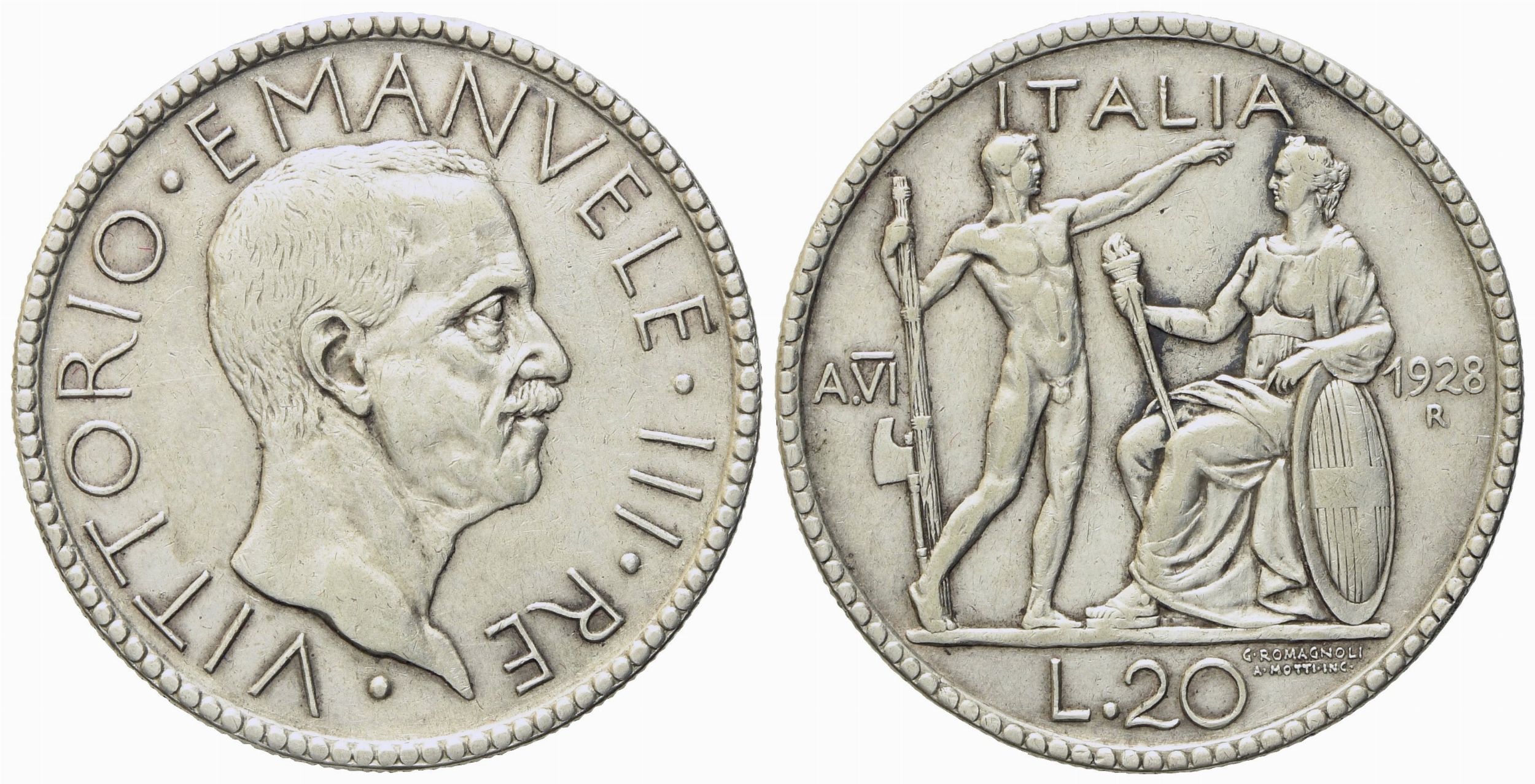 REGNO D'ITALIA. Vittorio Emanuele III (1900-1943). 20 Lire 1928 Littore. Ag (14,85 [..]