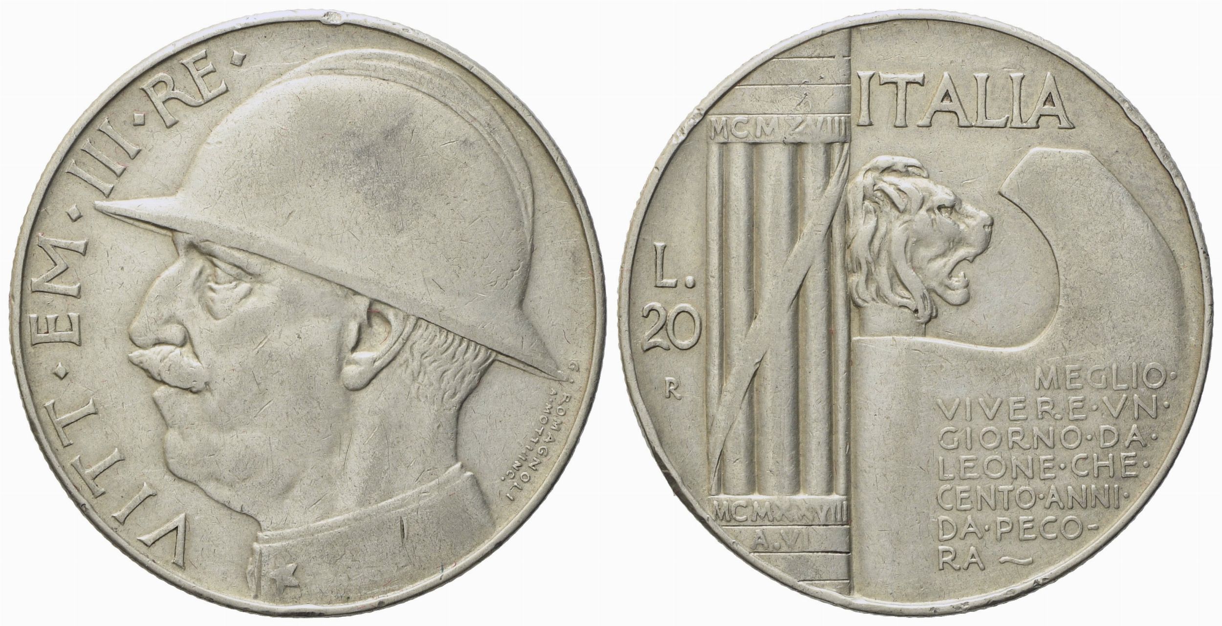 REGNO D'ITALIA. Vittorio Emanuele III (1900-1943). 20 Lire 1928 “Elmetto”. Ag [..]