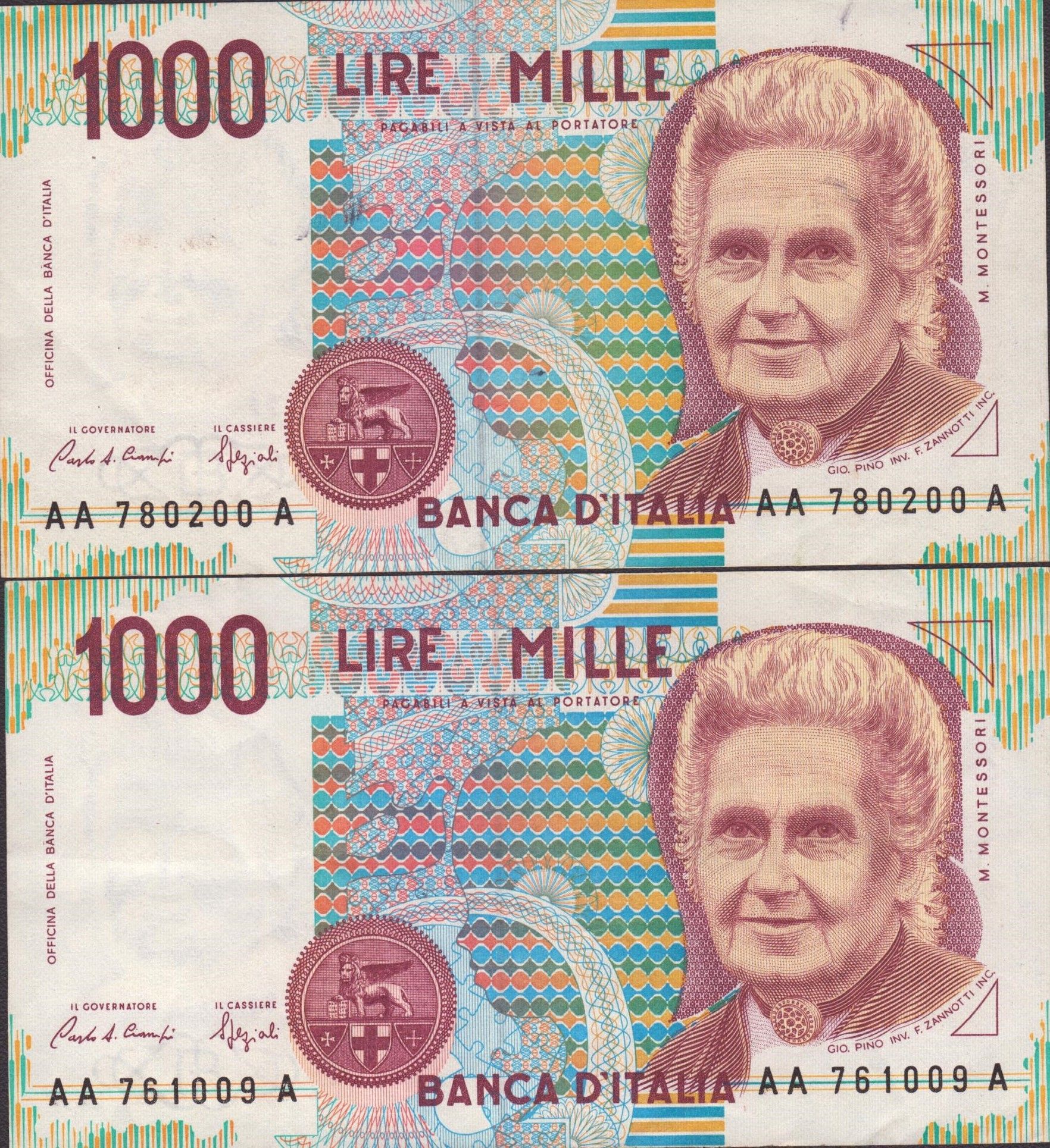 REPUBBLICA ITALIANA. 1000 Maria Montessori 21-10-1990. Tripla A, lotto di due es [..]