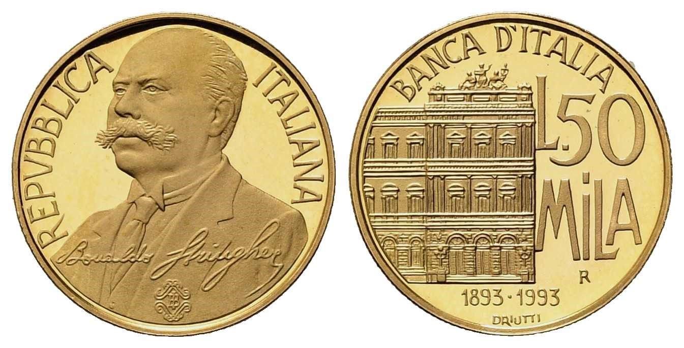 REPUBBLICA ITALIANA. Lire 50.000 1993 Banca d'Italia. Coniazione Aurea. Au (7,5 [..]