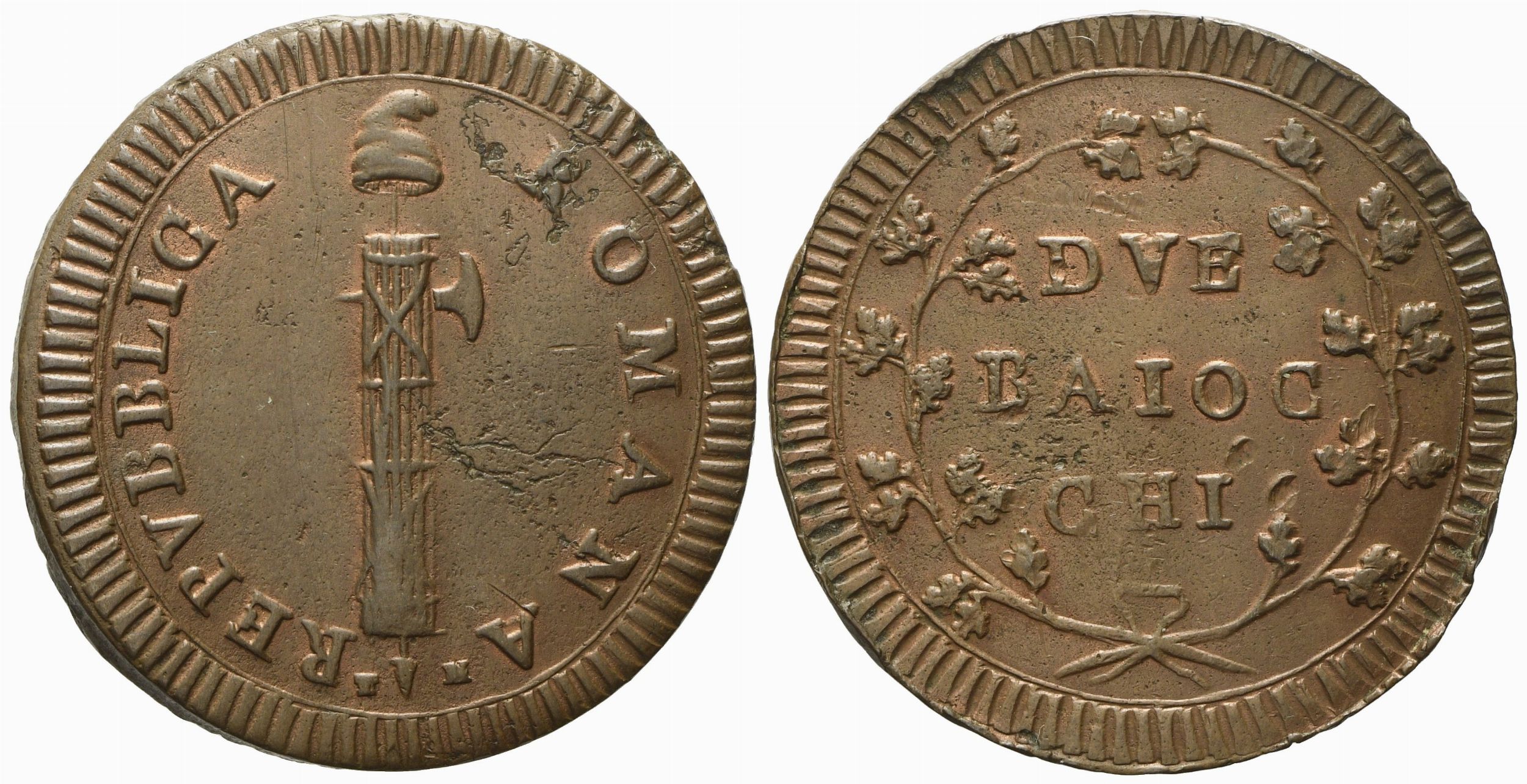 ROMA. Prima Repubblica Romana (1798 - 1799). 2 Baiocchi, senza data (6° tipo; sigle [..]
