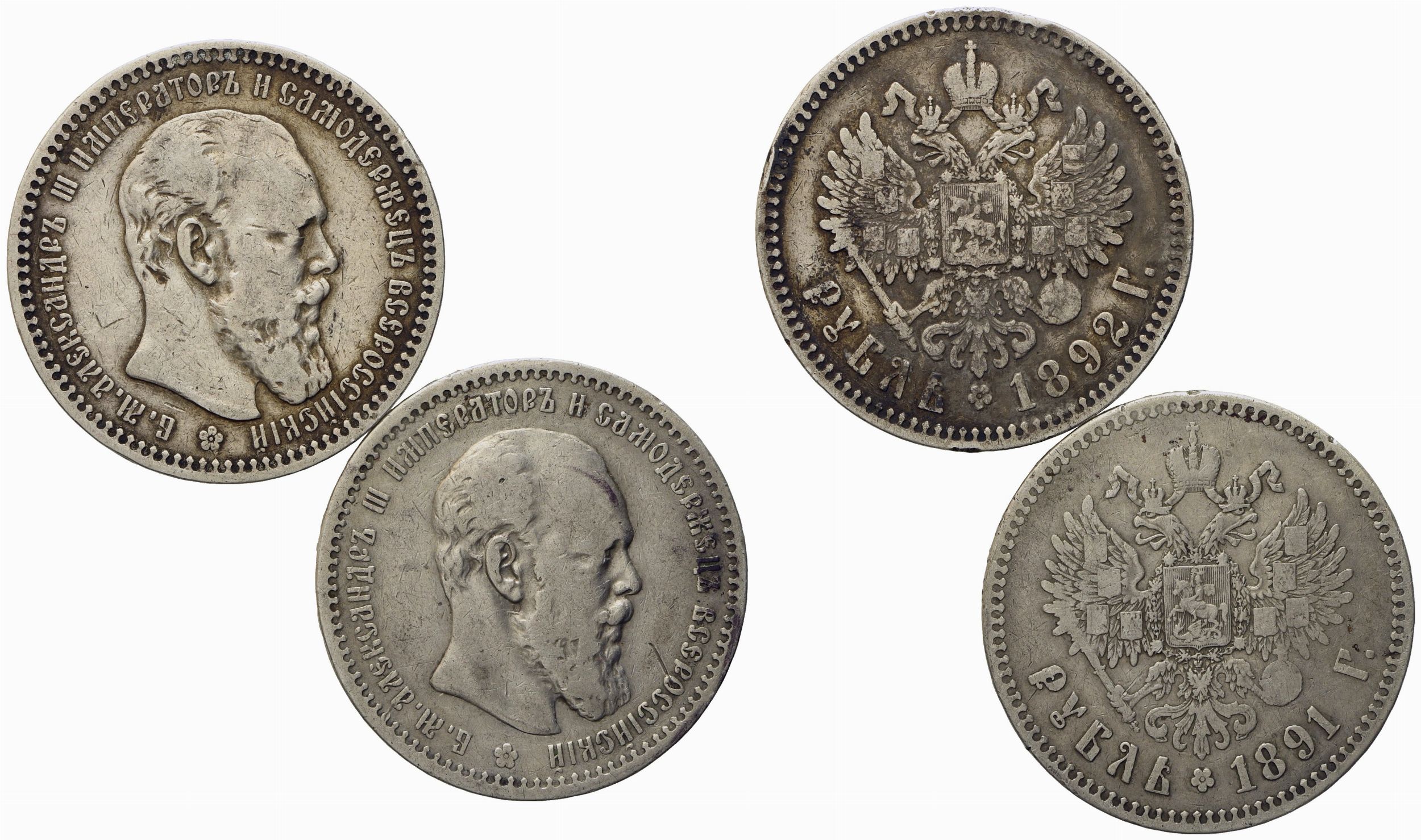 RUSSIA. San Pietroburgo. Alessandro III (1881-1894). Rublo 1891 - 1892. Lotto di [..]