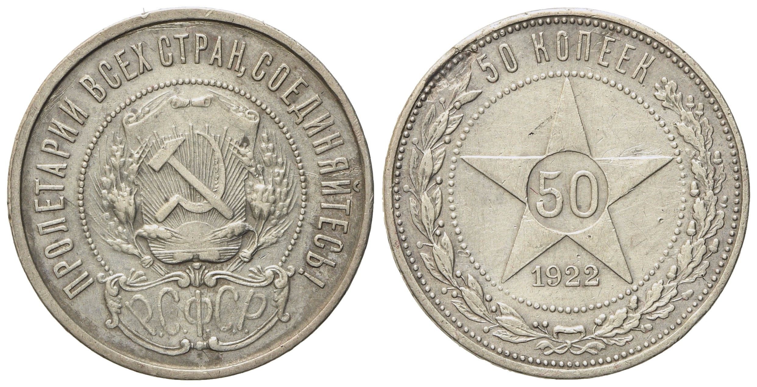 RUSSIA. URSS. Mezzo rublo, 50 copechi 1922. Ag (9,95 g; 26,3 mm)