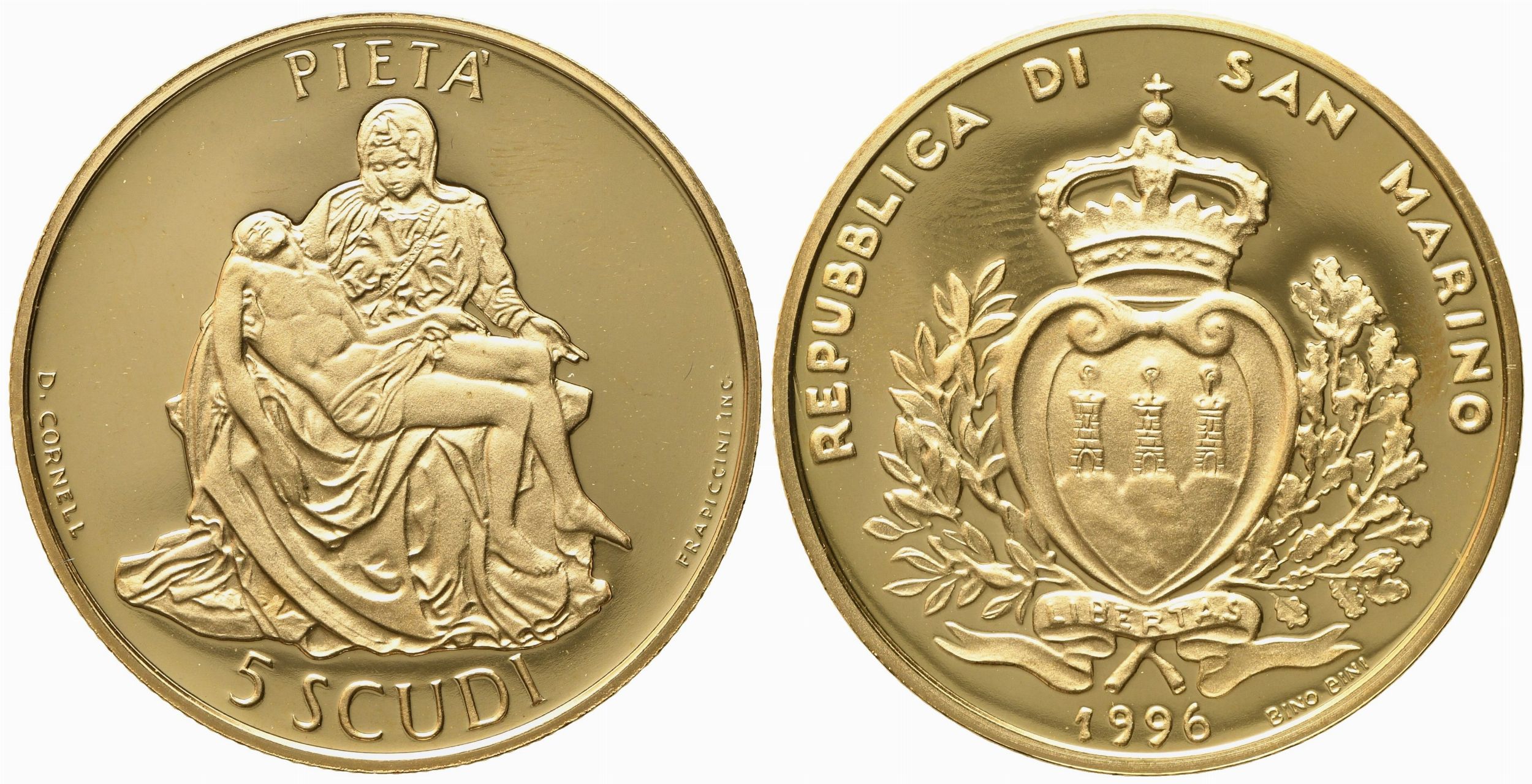SAN MARINO. 5 scudi 1996. Au 916,66 (16,96 g)
