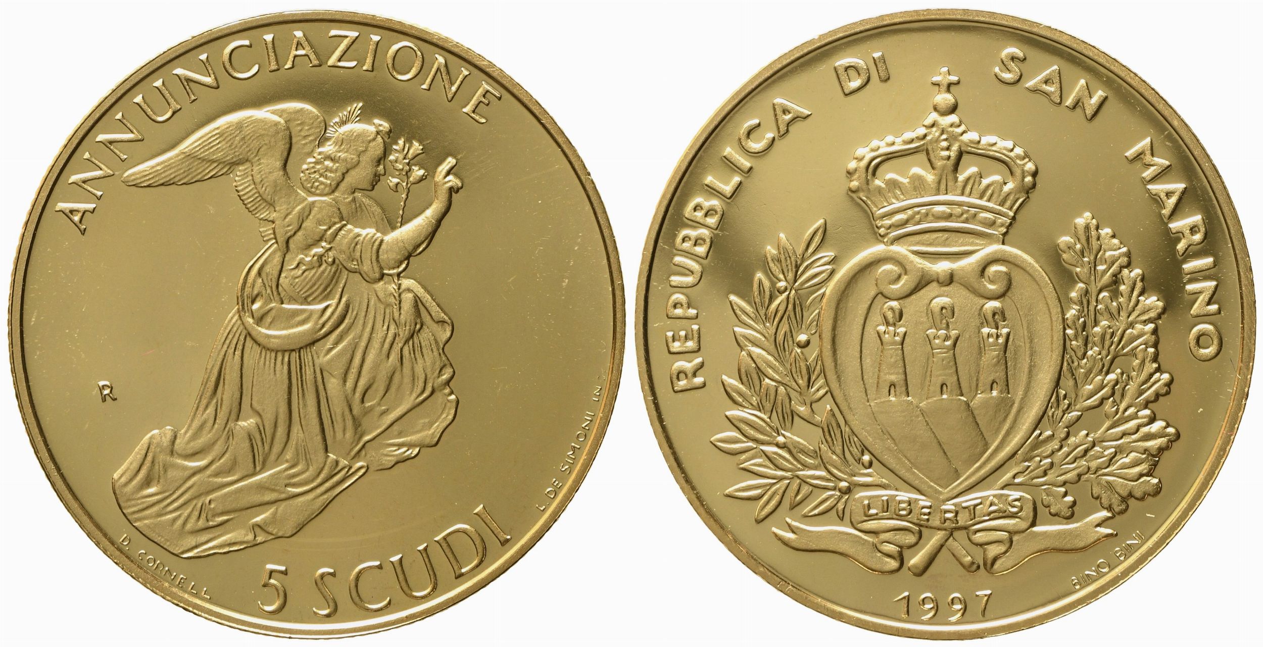 SAN MARINO. 5 scudi 1997. Au 916,66 (16,96 g)