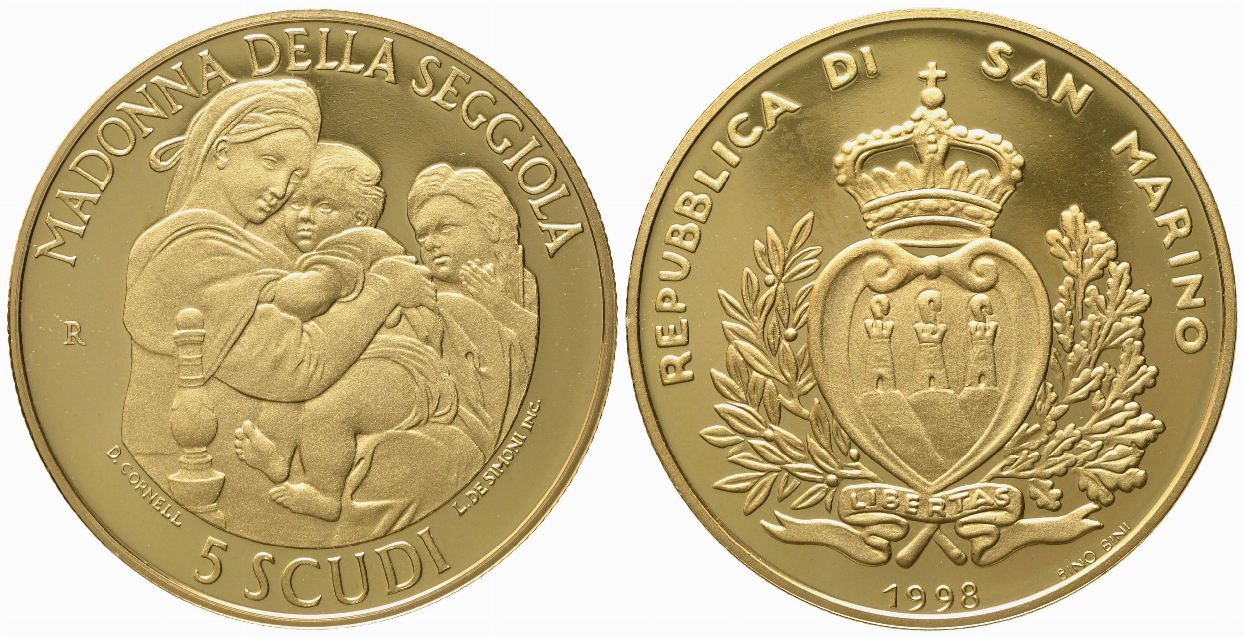 SAN MARINO. 5 scudi 1998. Au 916,66 (16,96 g)