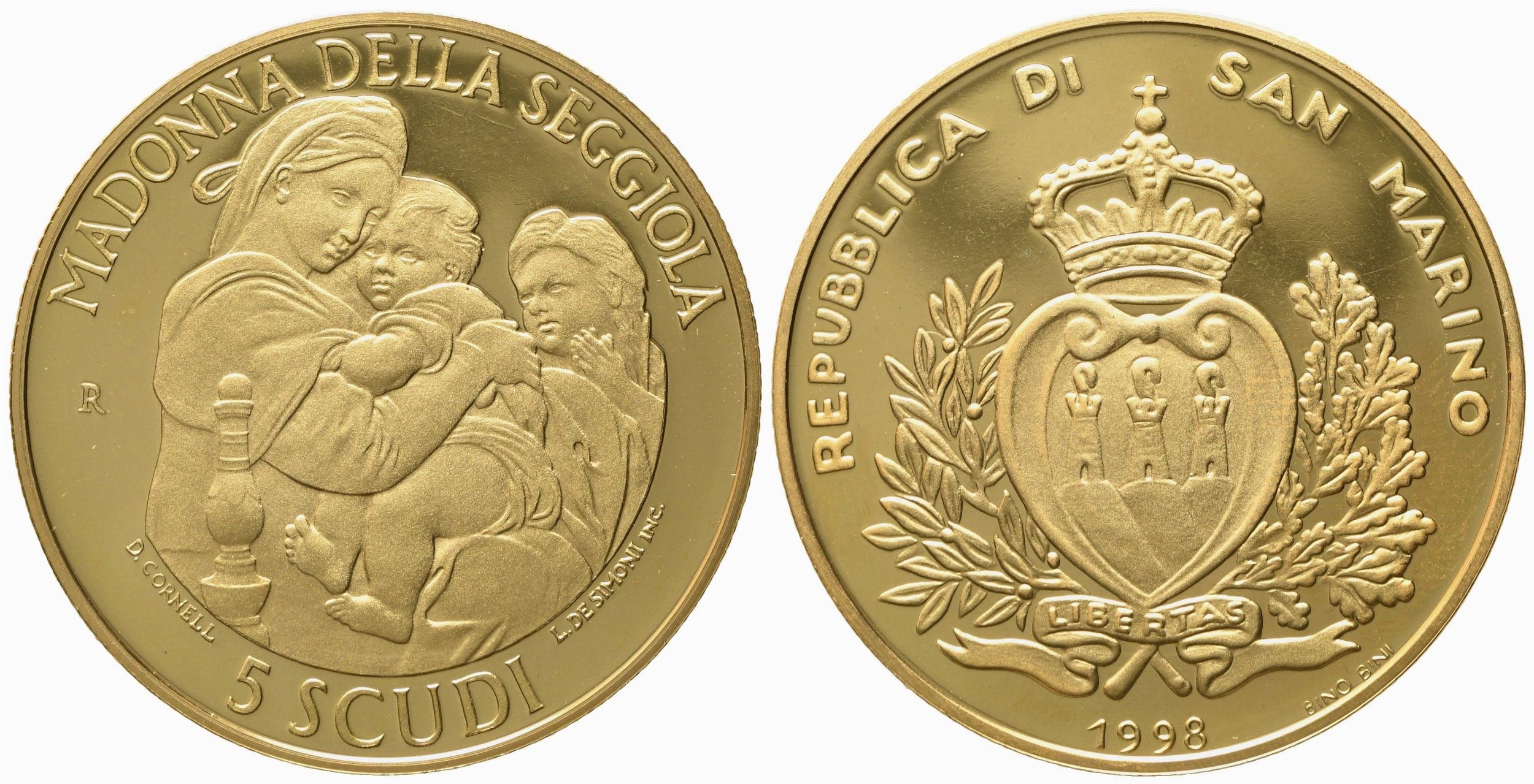 SAN MARINO. 5 scudi 1998. Au 916,66 (16,96 g)