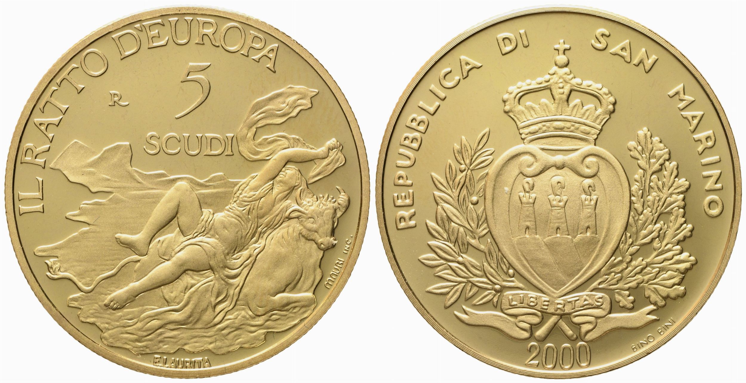 SAN MARINO. 5 scudi 2000. Au 916,66 (16,96 g)