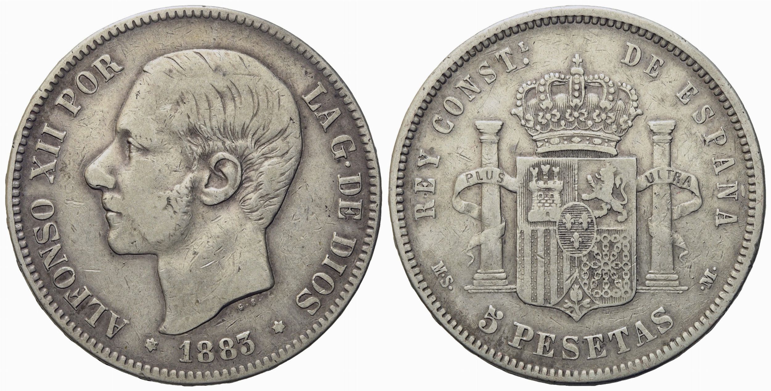 SPAGNA. Alfonso XII (1874-1889). 5 pesetas 1883. Ag (24,70 g; 37,2 mm)