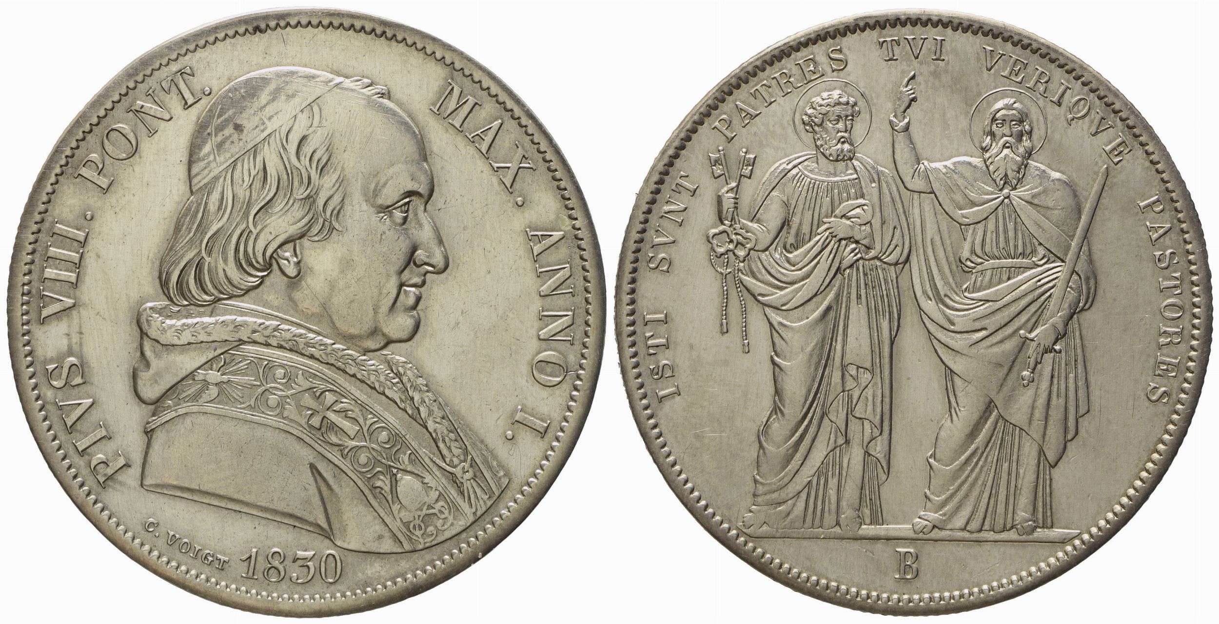 STATO PONTIFICIO. Bologna. Pio VIII (1829 - 1830). Scudo 1830. Ag (26,31 g; 37,8 [..]