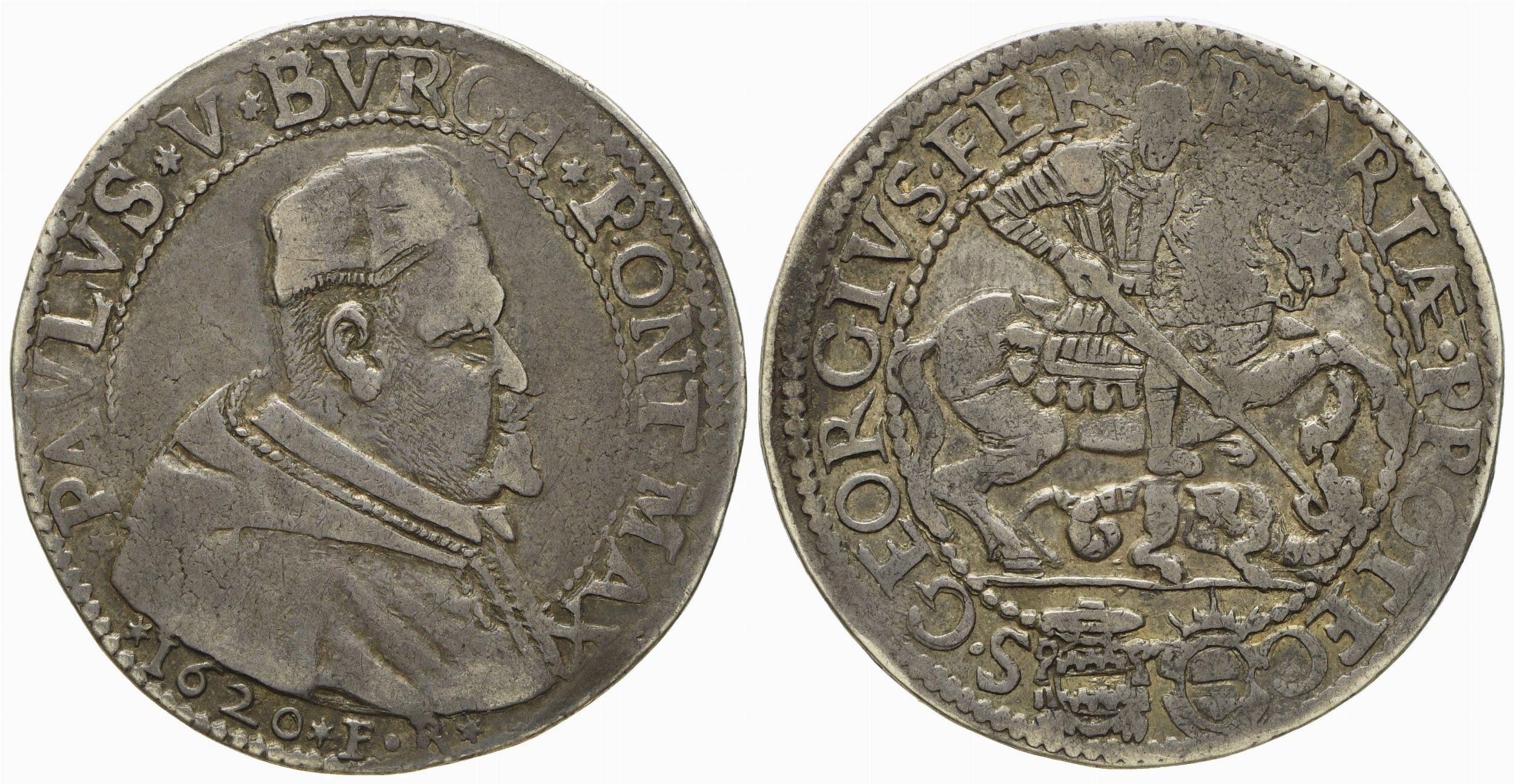 STATO PONTIFICIO. Ferrara. Paolo V (1605 - 1621). Testone 1620. Ag (9,46 g; 30,7 [..]
