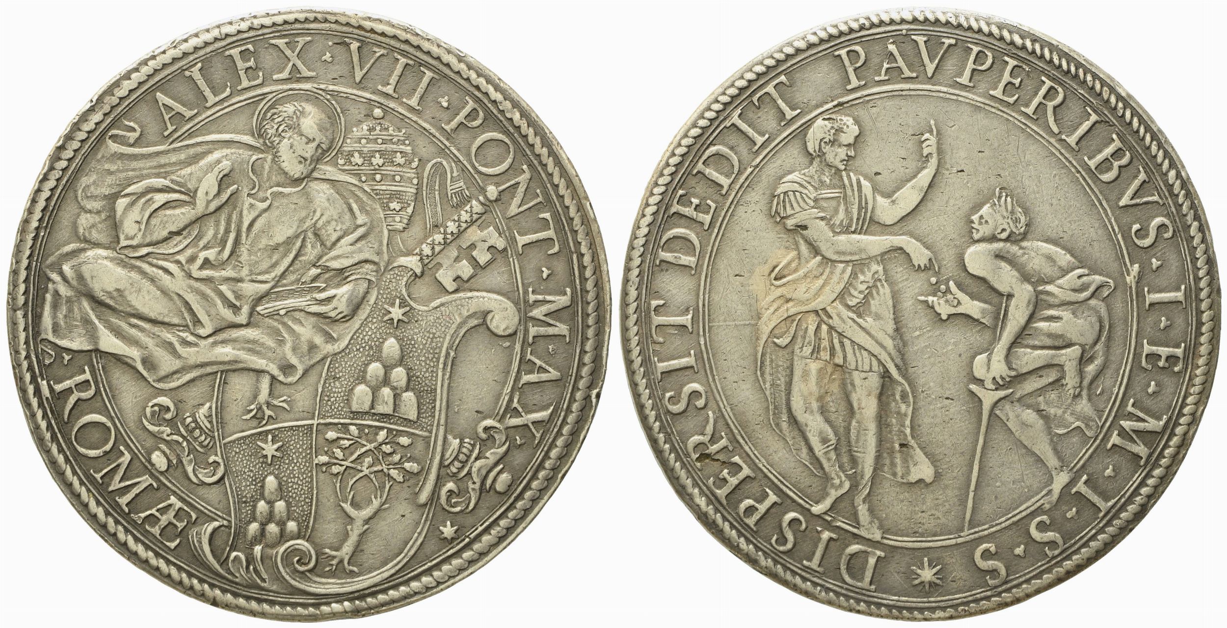 STATO PONTIFICIO. Roma. Alessandro VII (1655 - 1667). Piastra (1658). Ag (31,89 [..]