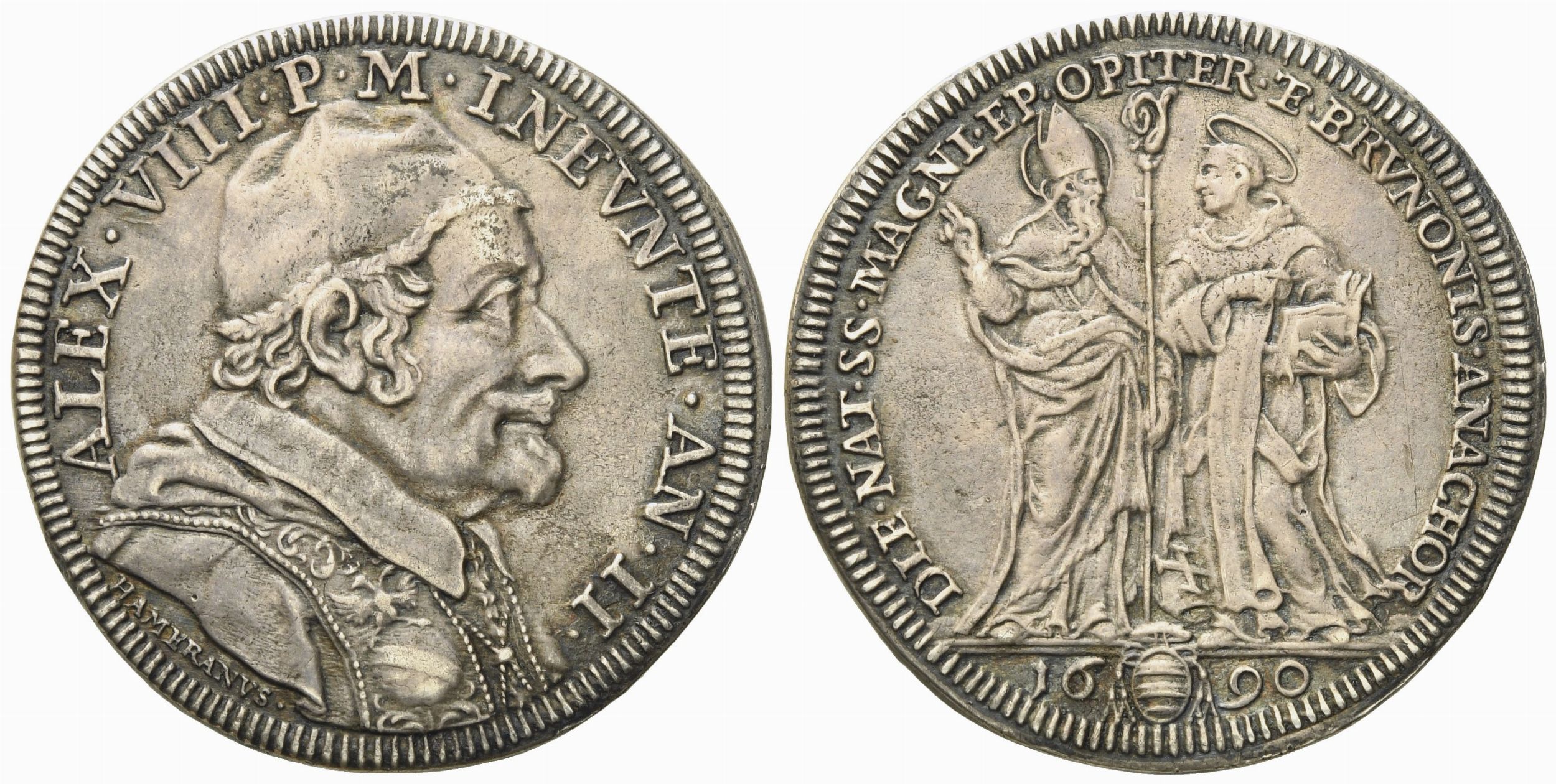 STATO PONTIFICIO. Roma. Alessandro VIII (1689 - 1691). Testone 1690 SS Magno e Brunone. [..]