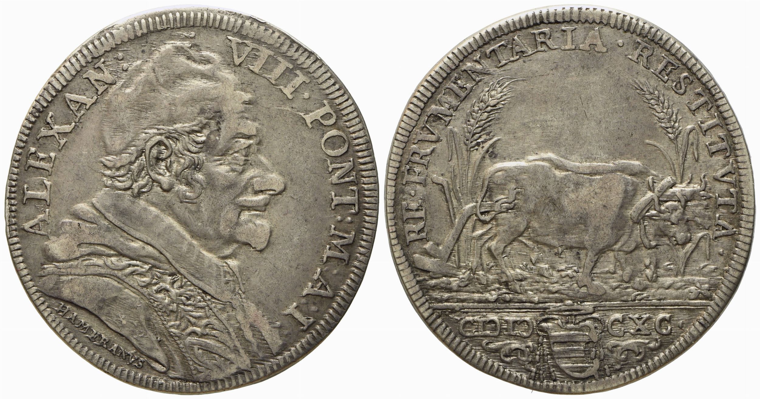 STATO PONTIFICIO. Roma. Alessandro VIII (1689 - 1691). Testone 1690 Buoi con aratro. [..]