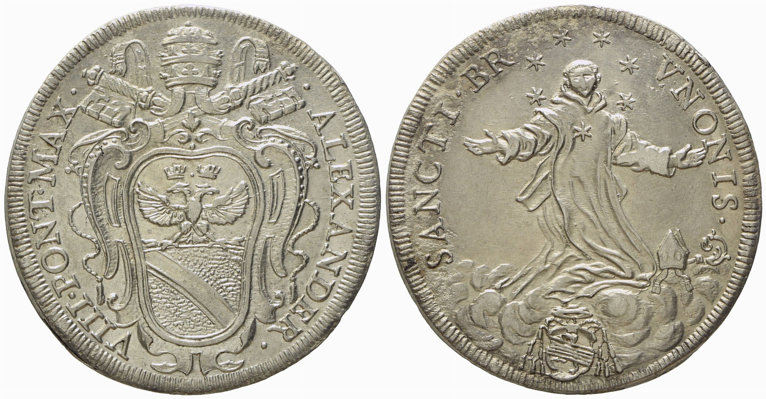 STATO PONTIFICIO. Roma. Alessandro VIII (1689 - 1691). Testone 1690 San Brunone. [..]