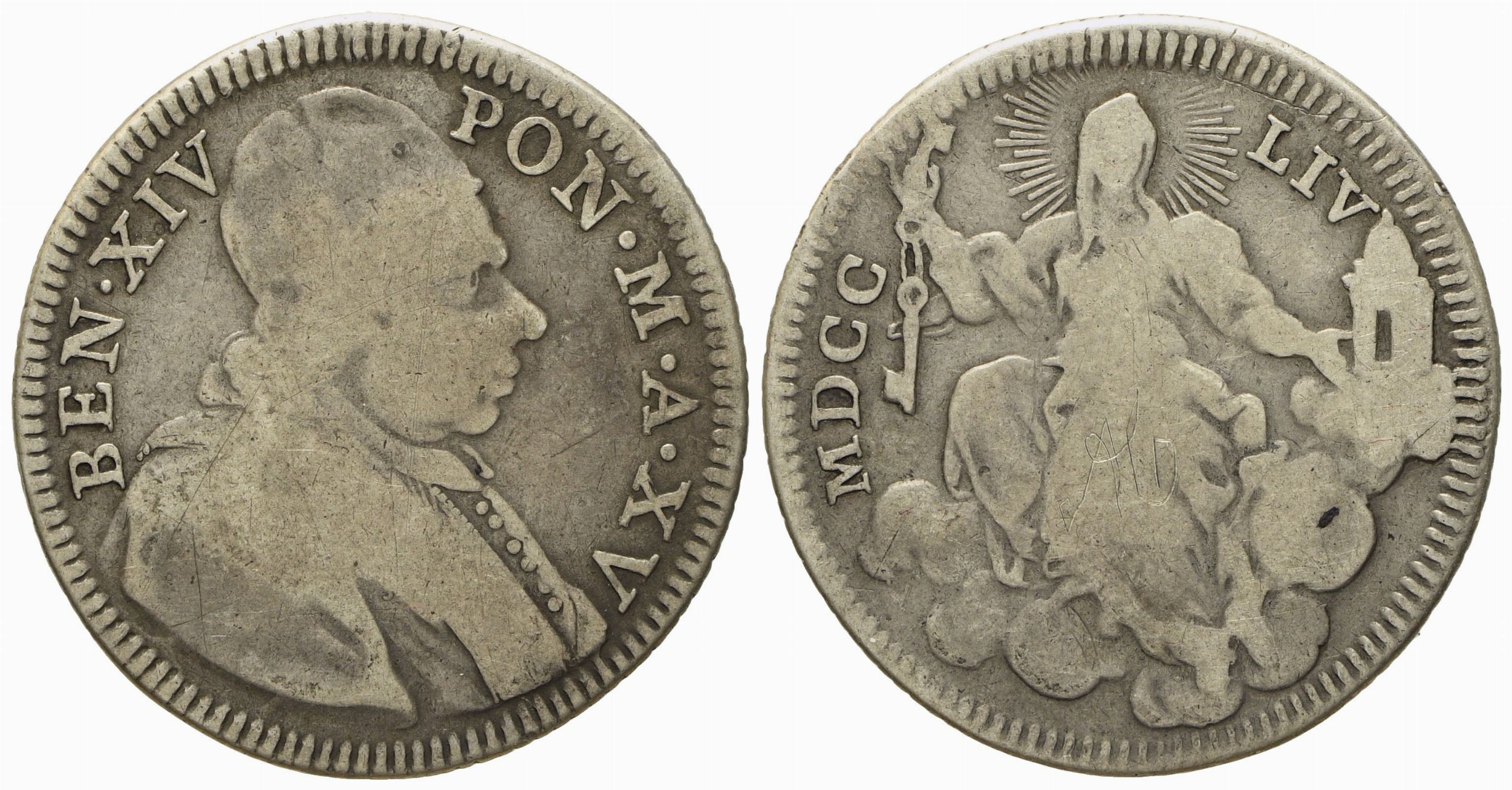 STATO PONTIFICIO. Roma. Benedetto XIV (1740 - 1758). Doppio giulio 1754, anno XV. [..]