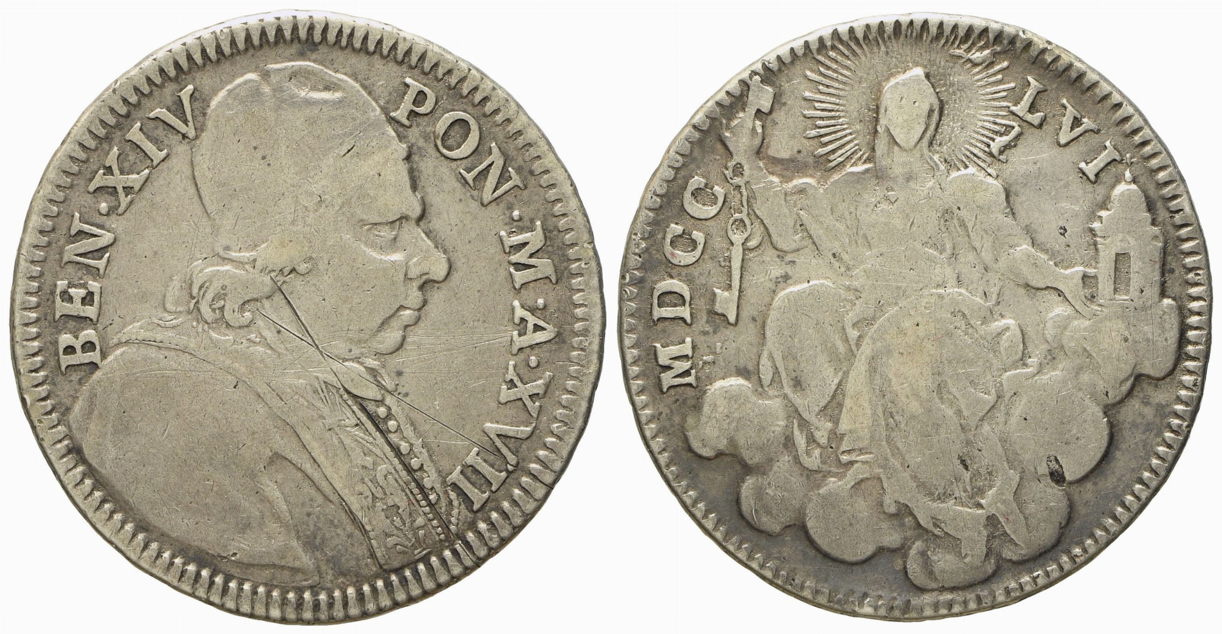 STATO PONTIFICIO. Roma. Benedetto XIV (1740 - 1758). Doppio giulio 1756, anno XVII. [..]