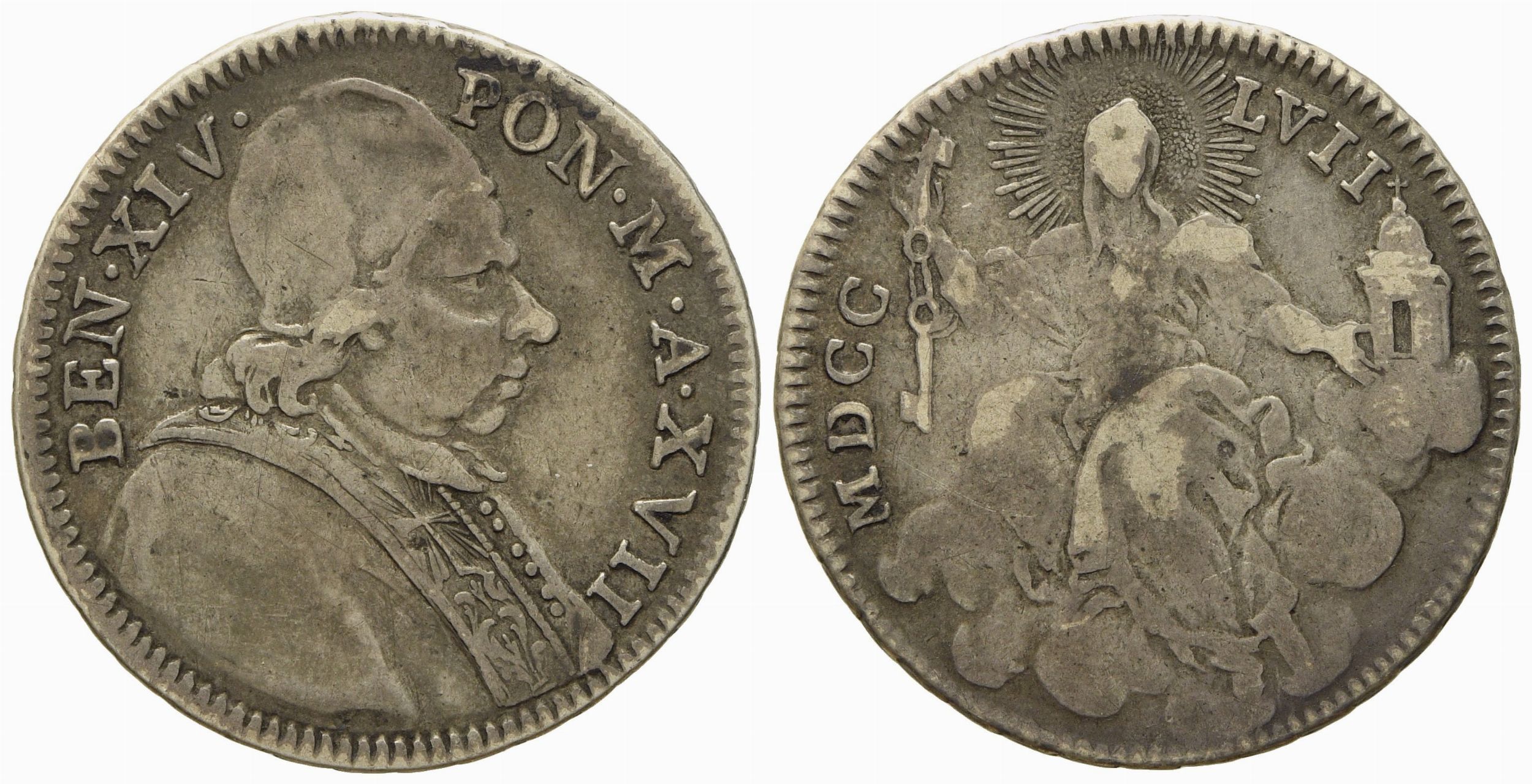 STATO PONTIFICIO. Roma. Benedetto XIV (1740 - 1758). Doppio giulio 1757, anno XVII [..]