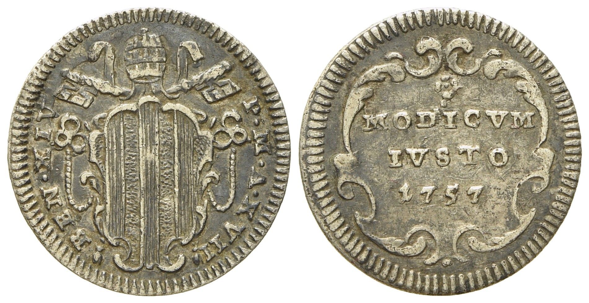 STATO PONTIFICIO. Roma. Benedetto XIV (1740 - 1758). Mezzo grosso 1757. Ag (g 0,69; [..]