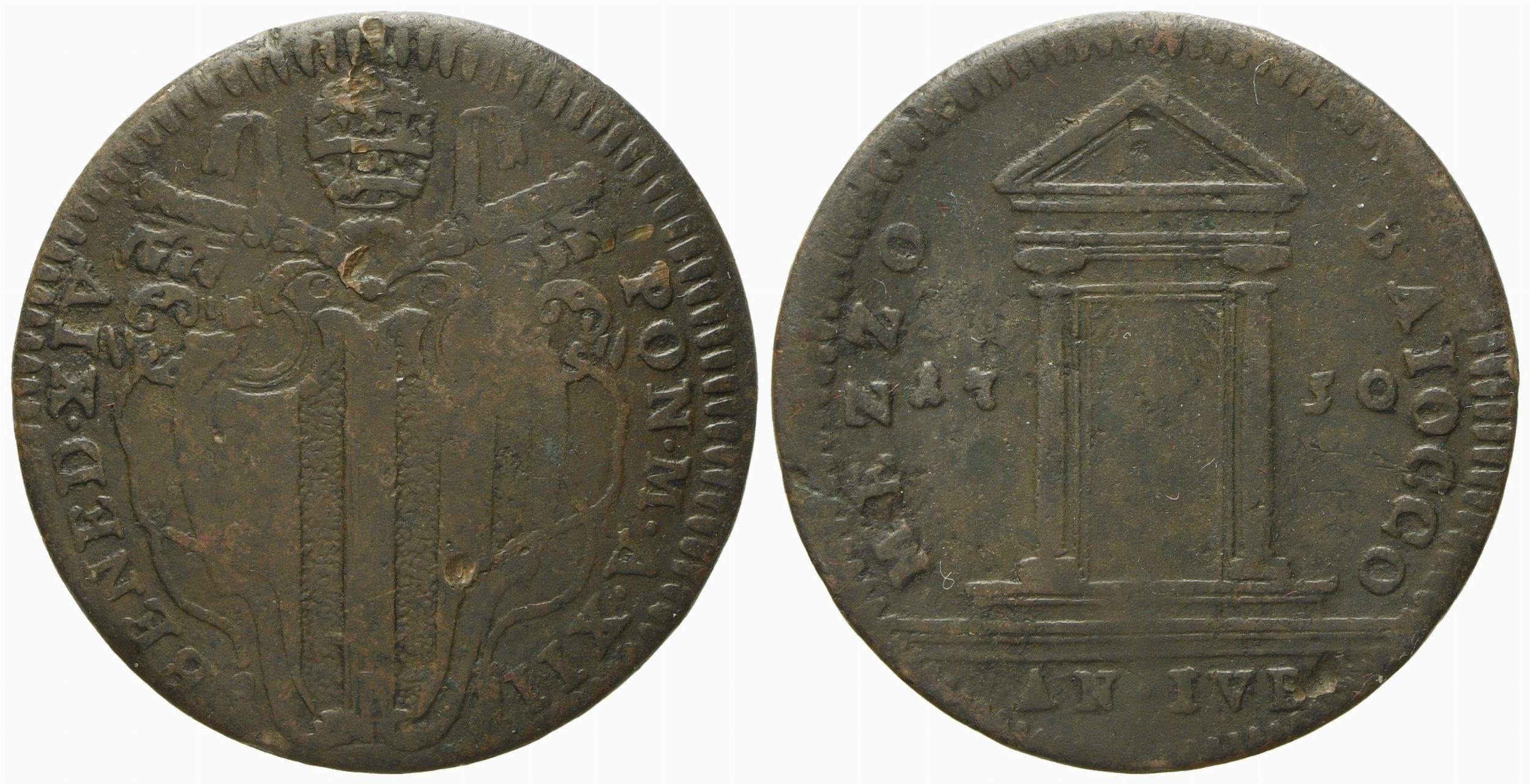 STATO PONTIFICIO. Roma. Benedetto XIV (1740 - 1758). Mezzo baiocco 1750, anno XII [..]