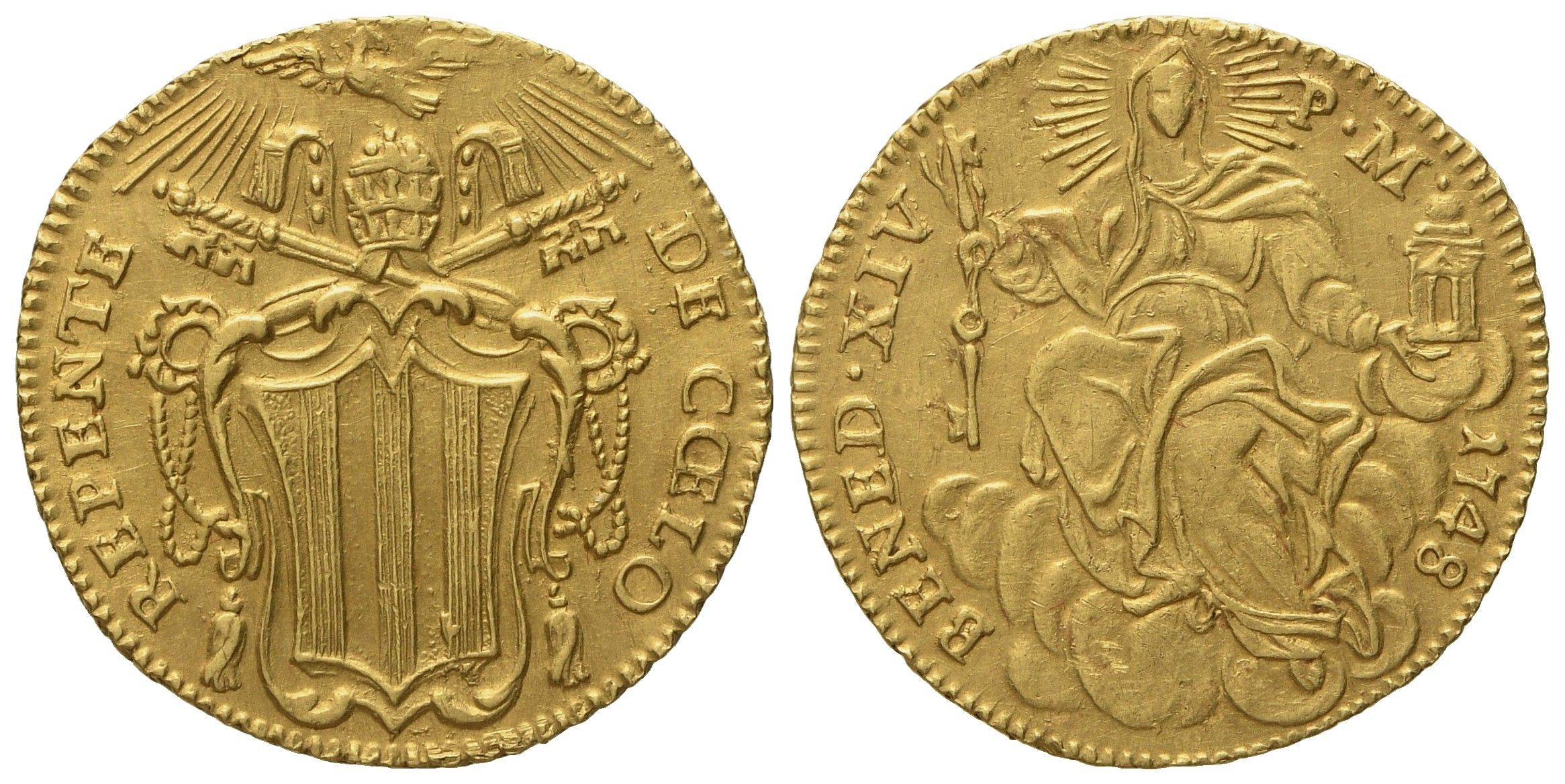 STATO PONTIFICIO. Roma. Benedetto XIV (1740 - 1758). Zecchino 1748. Au (3,40 g; [..]