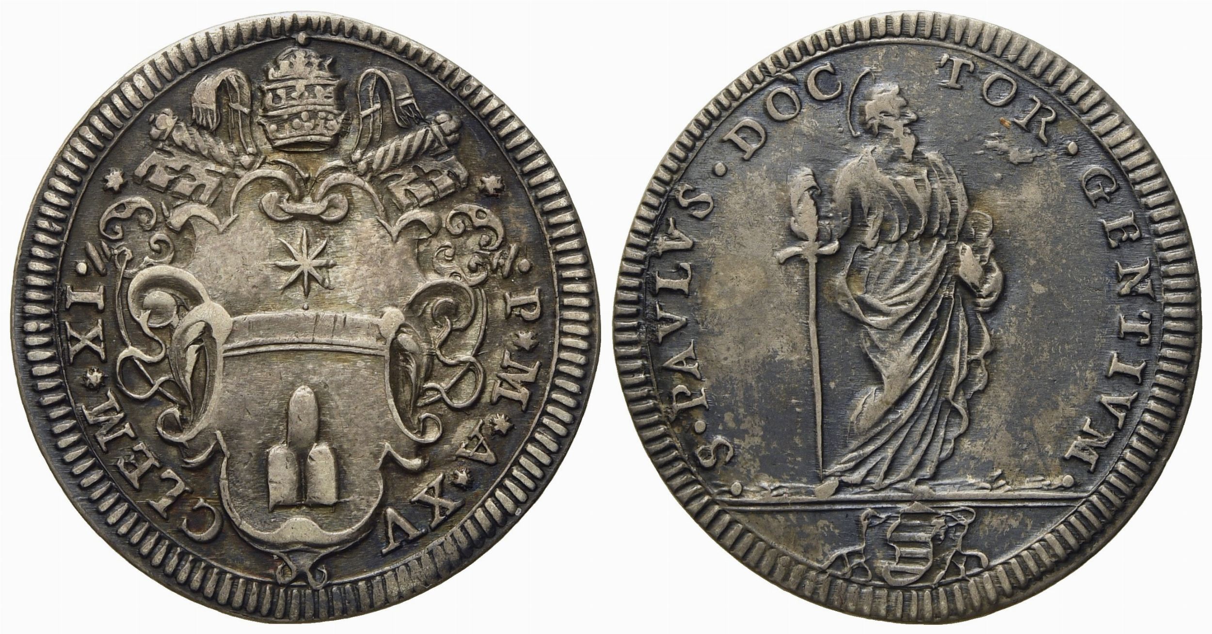 STATO PONTIFICIO. Roma. Clemente XI (1700 - 1721). Giulio, anno XV San Paolo. Ag [..]