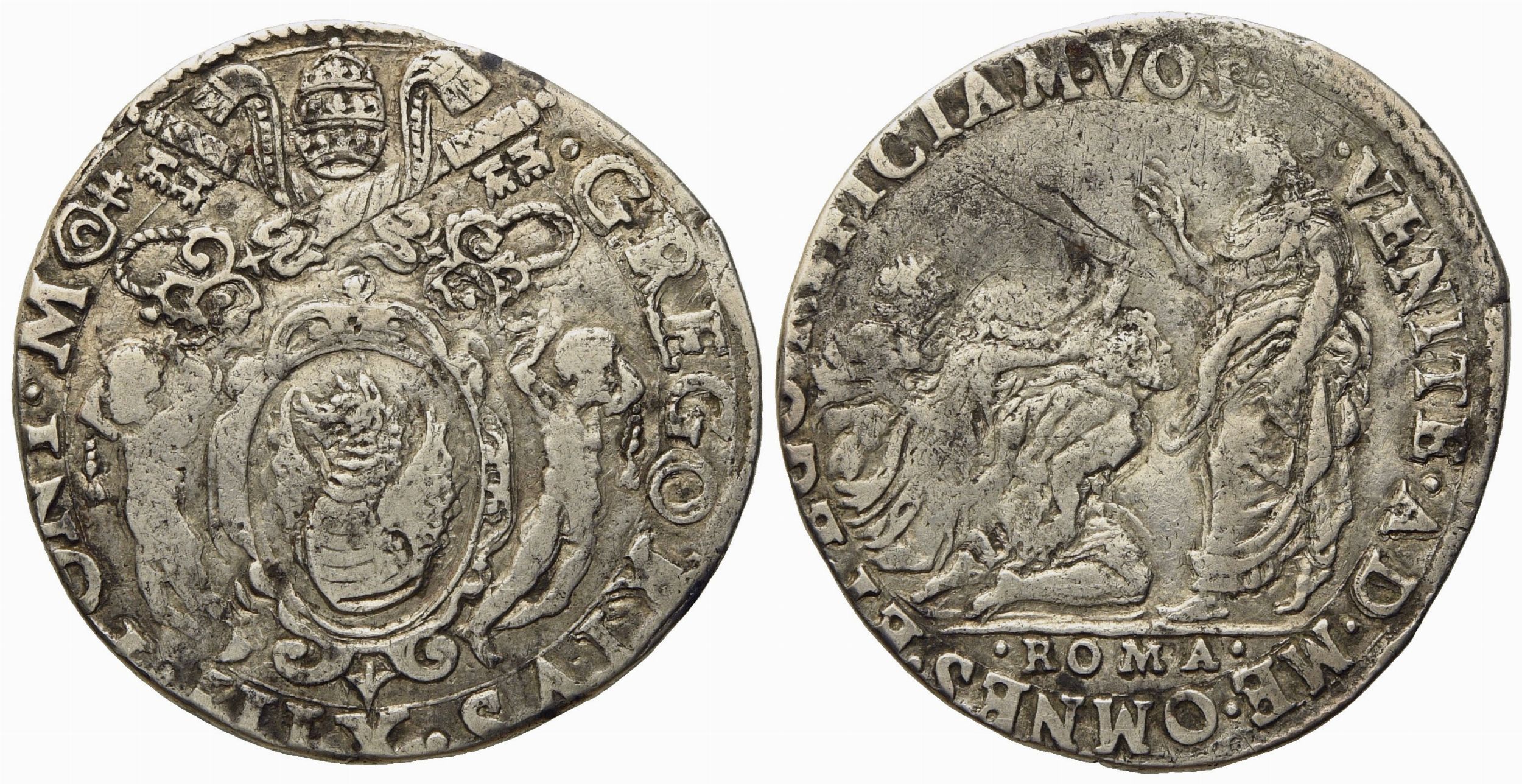 STATO PONTIFICIO. Roma. Gregorio XIII (1572 - 1585). Testone Predica di Gesù. Ag [..]