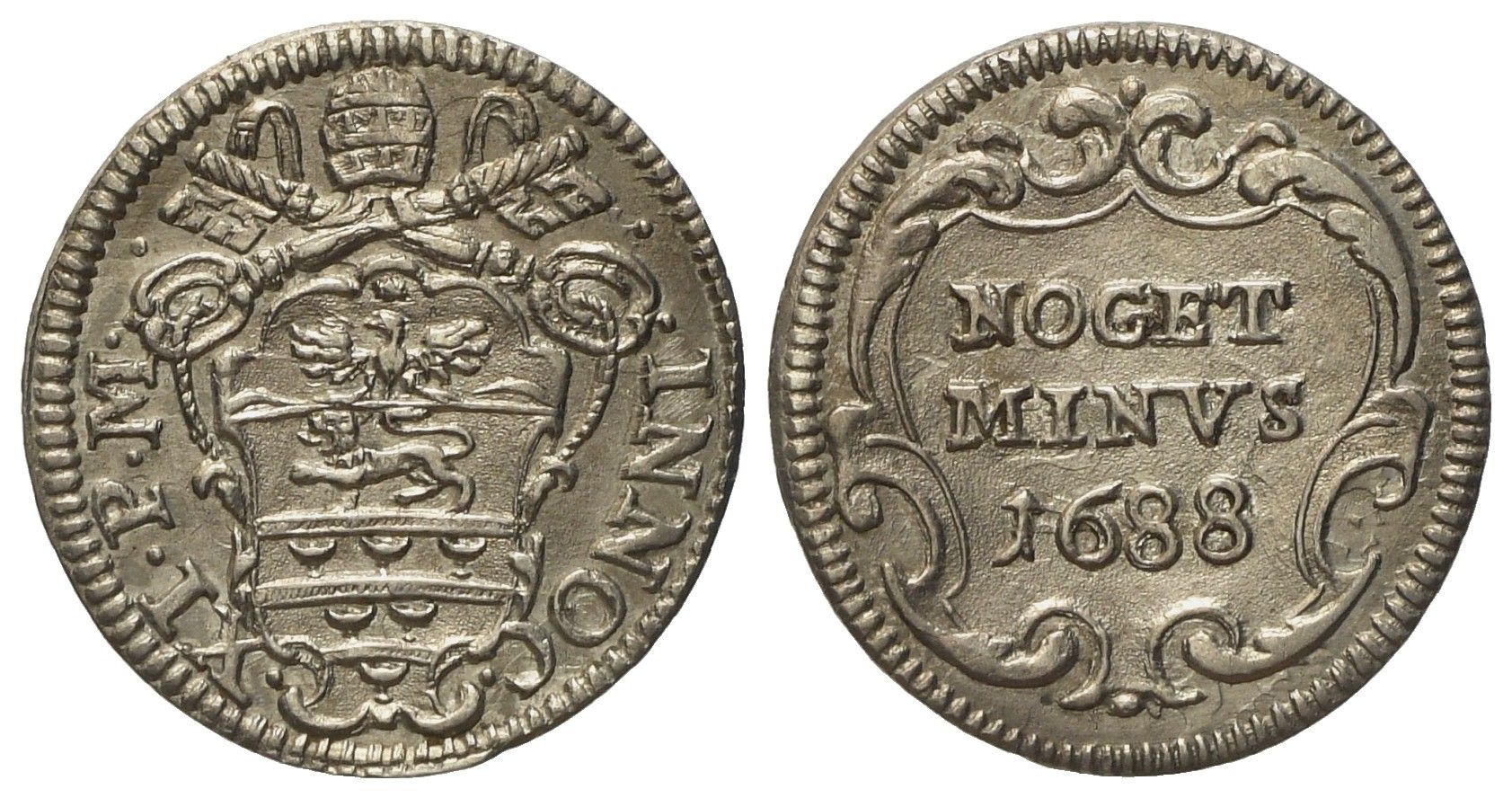 STATO PONTIFICIO. Roma. Innocenzo XI (1676 - 1689). Mezzo grosso 1688. Ag (0,79 [..]