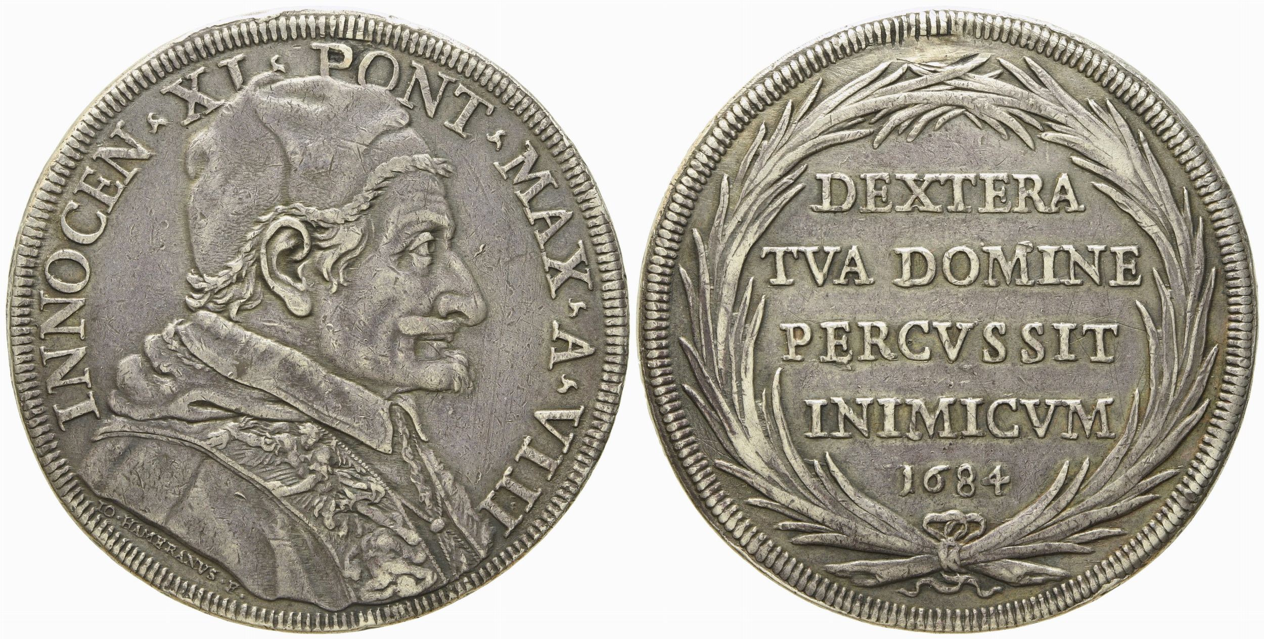 STATO PONTIFICIO. Roma. Innocenzo XI (1676 - 1689). Piastra 1684. Ag (31,78 g; 44 [..]