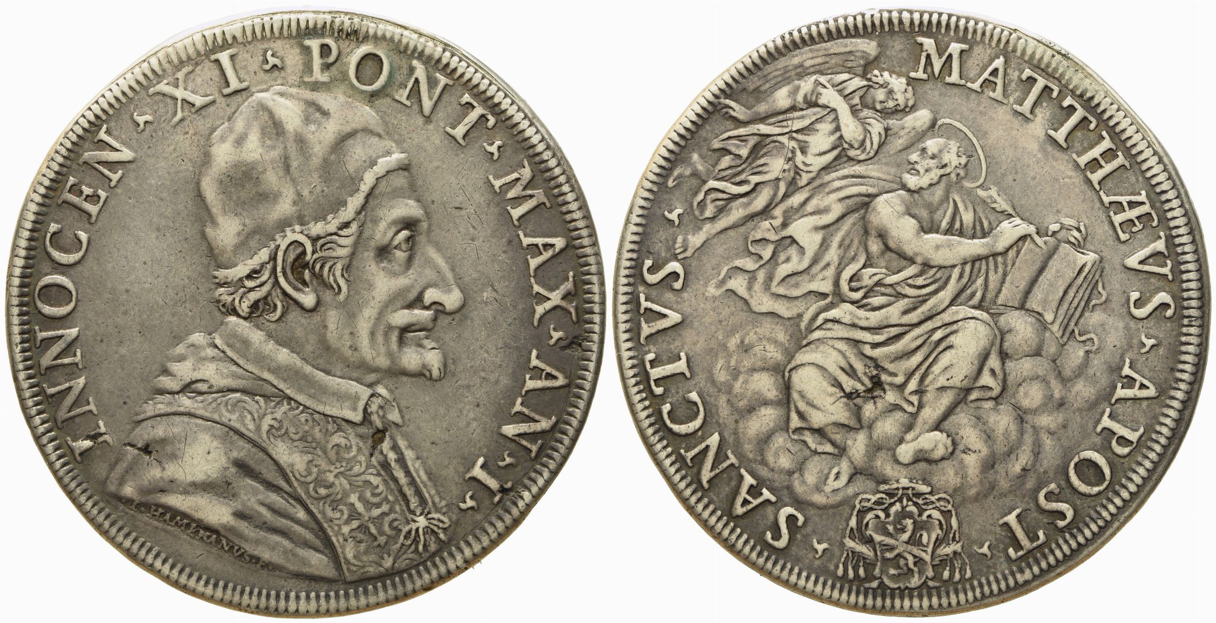 STATO PONTIFICIO. Roma. Innocenzo XI (1676 - 1689). Piastra, anno I San Matteo. [..]