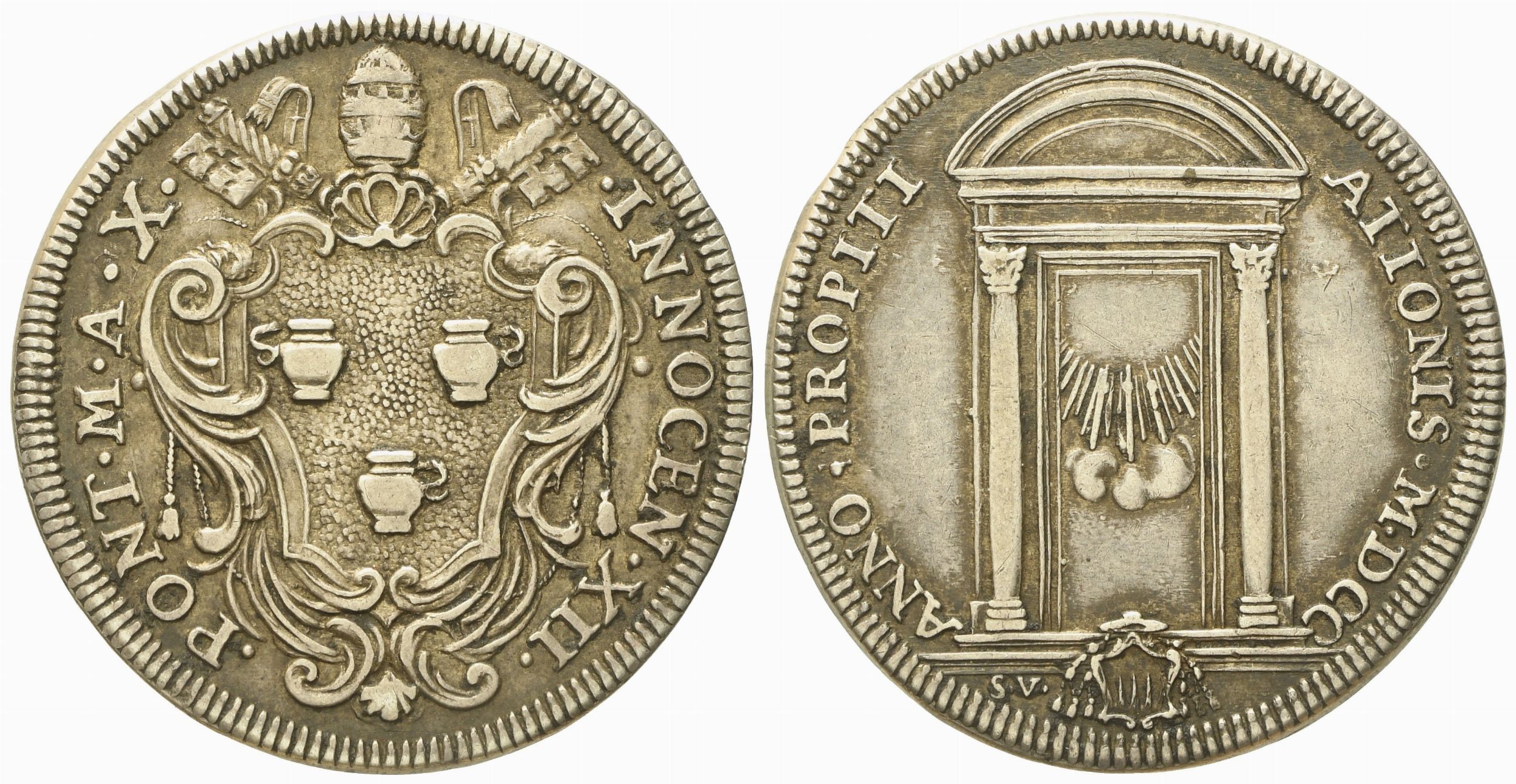 STATO PONTIFICIO. Roma. Innocenzo XII (1691 - 1700). Testone 1700 Giubileo, porta [..]