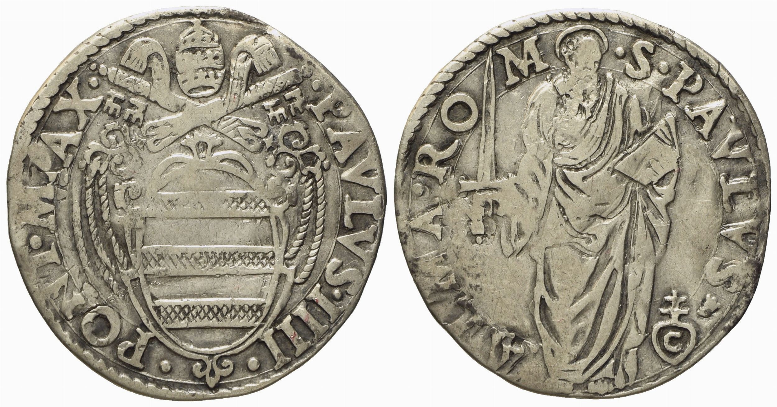 STATO PONTIFICIO. Roma. Paolo IV (1555 - 1559). Giulio San Paolo. Ag (2,99 g; 26,4 [..]