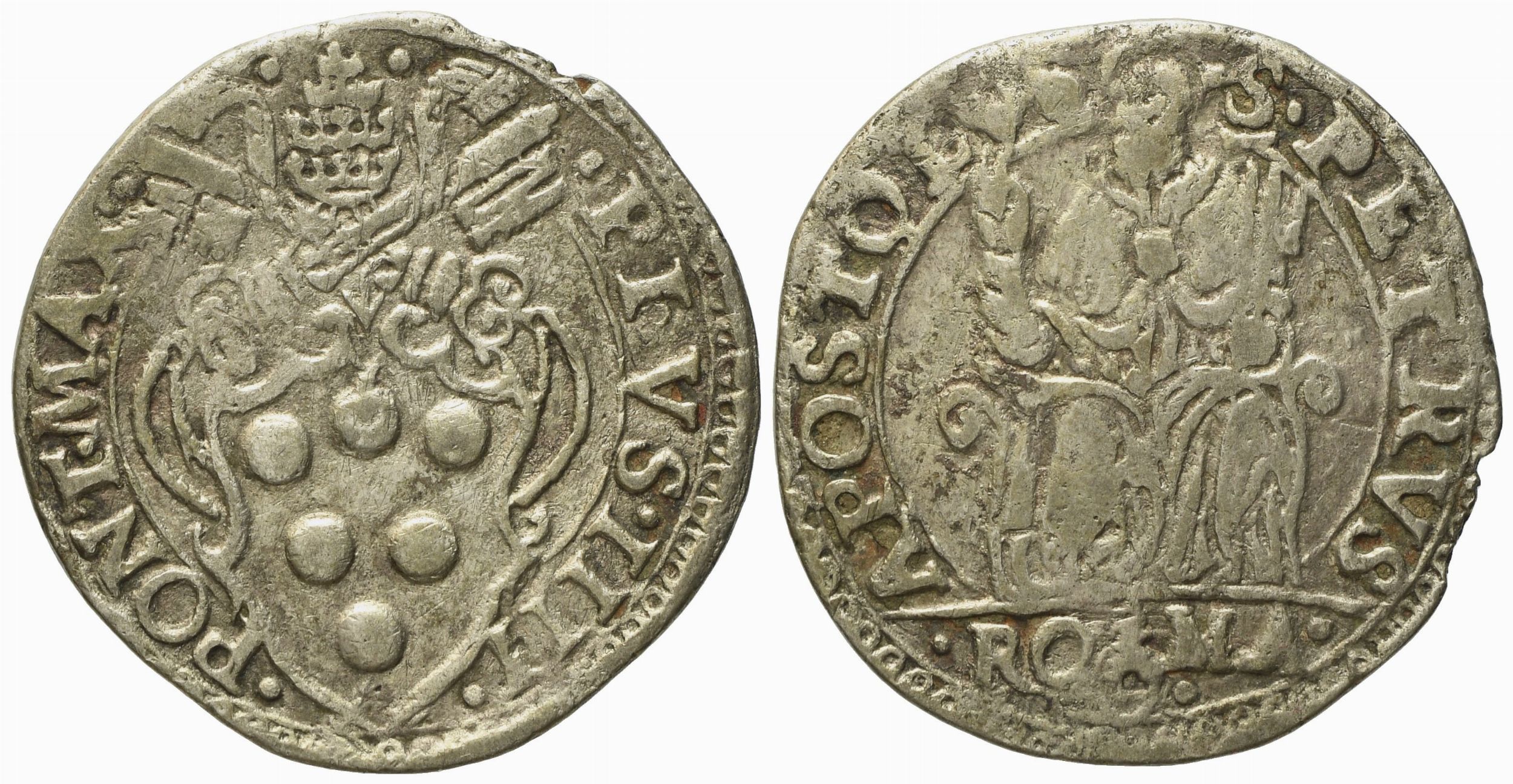 STATO PONTIFICIO. Roma. Pio IV (1559 - 1565). Testone. Ag (7,51 g; 29,1 mm)