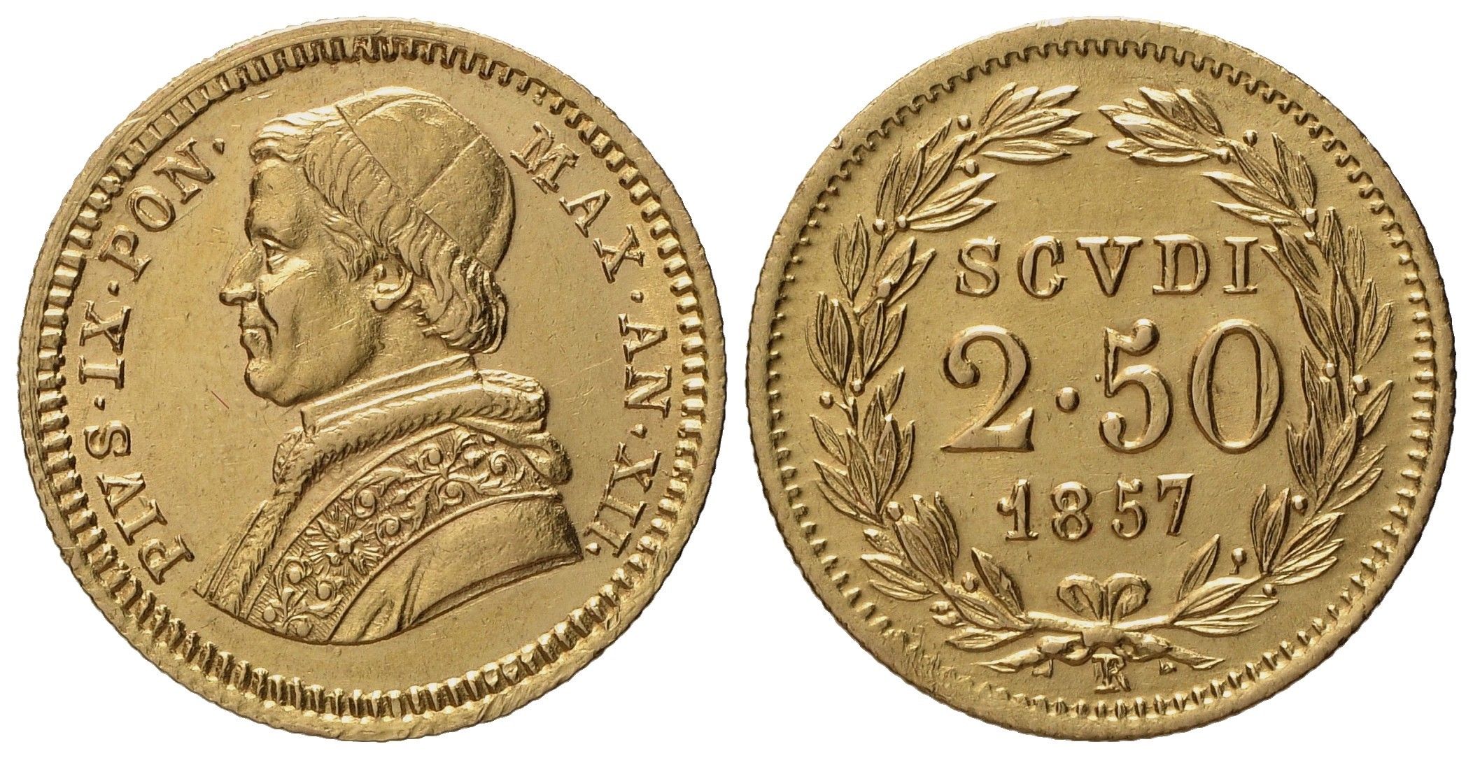STATO PONTIFICIO. Roma. Pio IX (1846 - 1870). 2,50 scudi 1857 anno XII. Au (4,38 [..]
