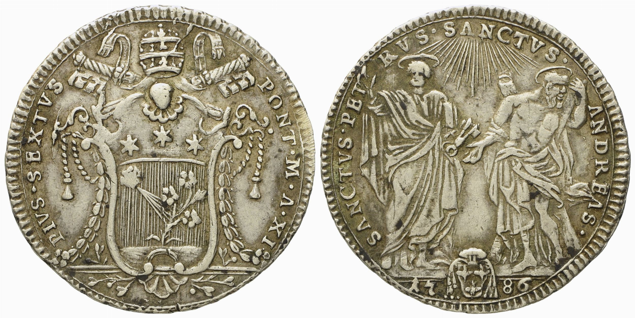 STATO PONTIFICIO. Roma. Pio VI (1775 - 1799). Testone 1786. Ag (7,89 g; 30,5 mm)