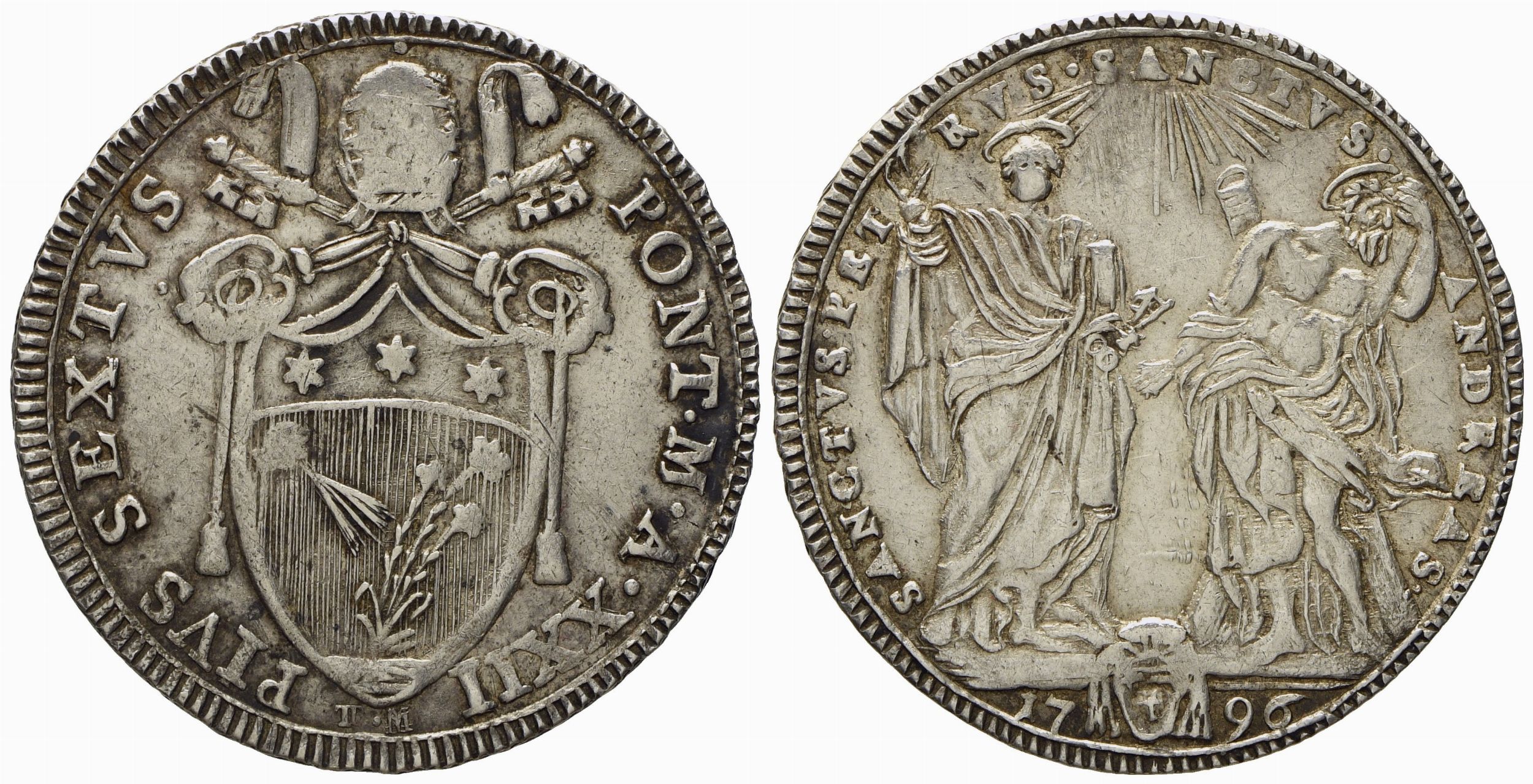 STATO PONTIFICIO. Roma. Pio VI (1775 - 1799). Testone 1796, anno XXII. Ag (g 7,87; [..]