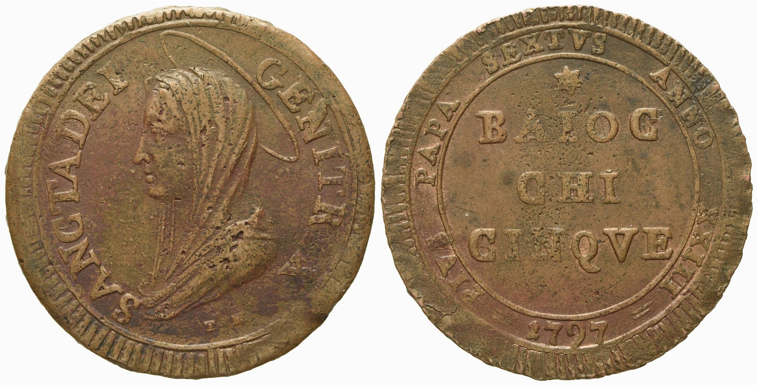 STATO PONTIFICIO. Roma. Pio VI (1775 - 1799). 5 baiocchi 1797, anno XXIII. Cu (g [..]