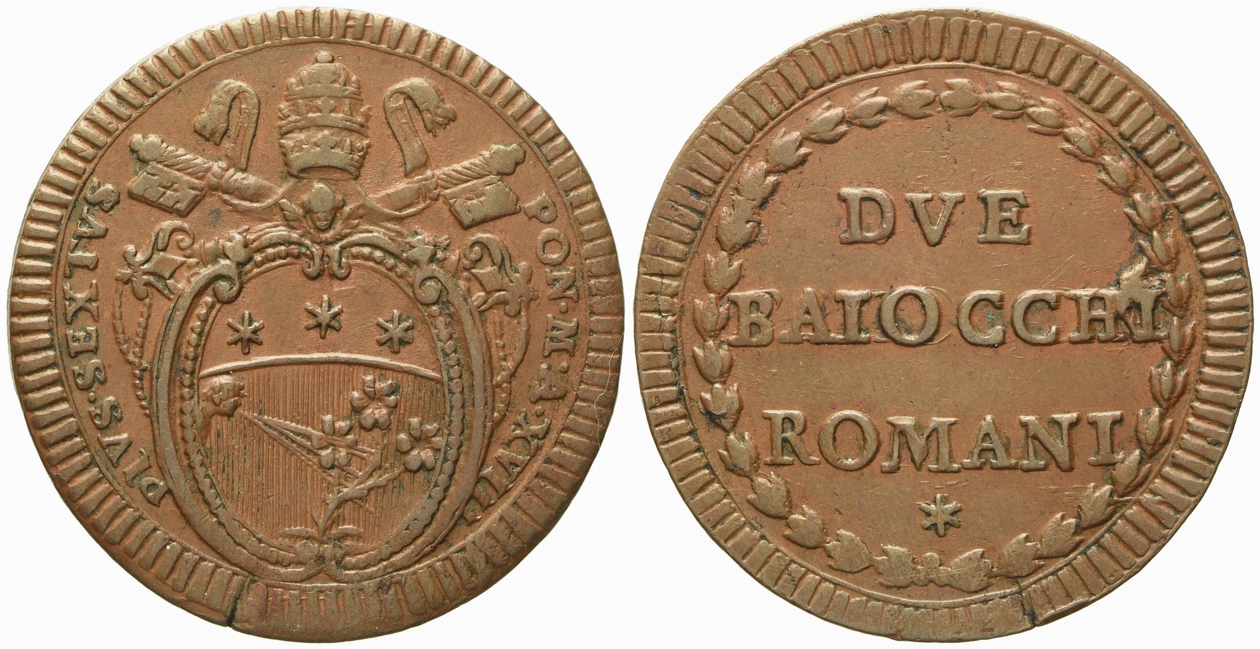 STATO PONTIFICIO. Roma. Pio VI (1775 - 1799). 2 baiocchi anno XVIII. Cu (g 24,67; [..]
