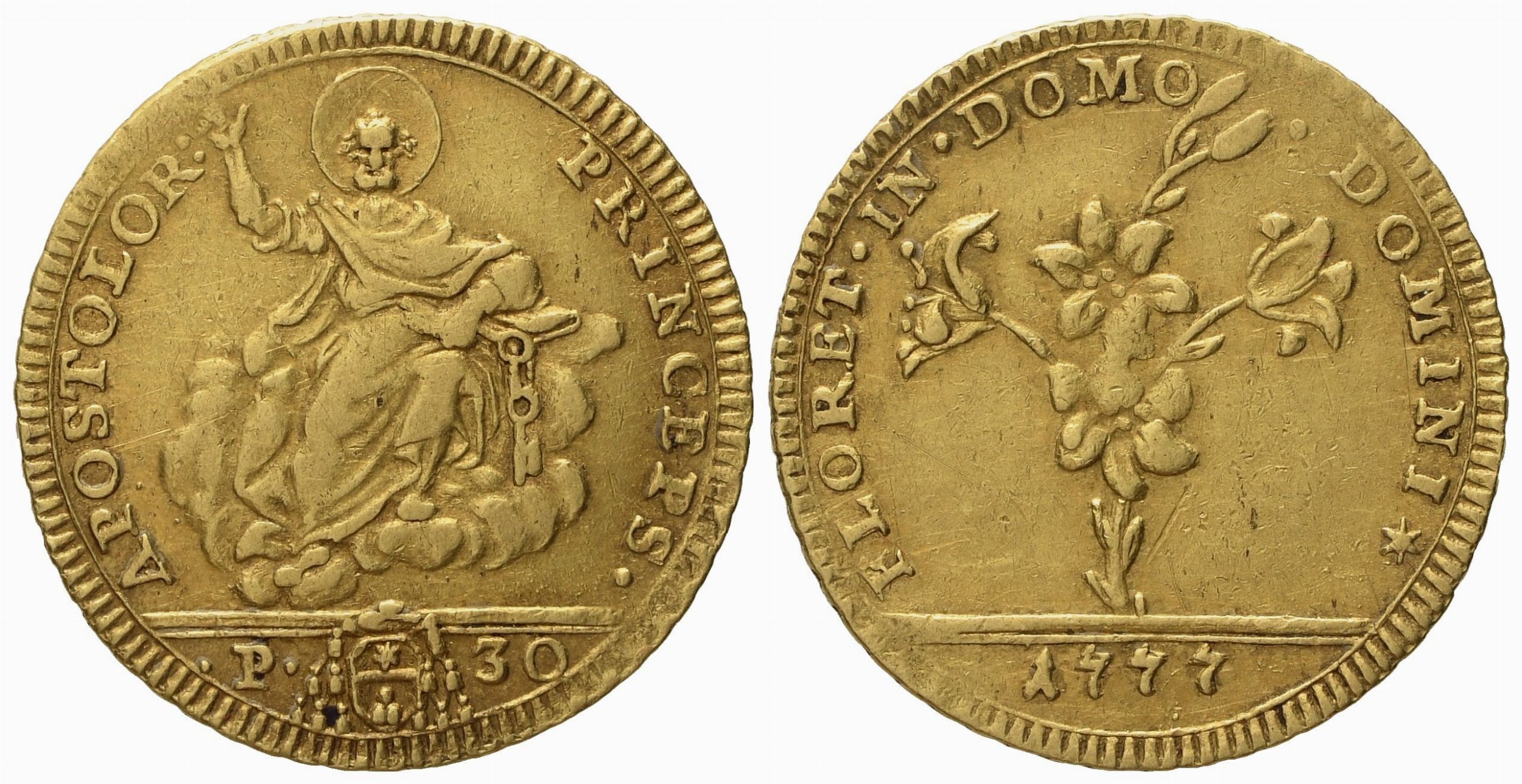 STATO PONTIFICIO. Roma. Pio VI (1775 - 1799). Doppia romana 1777. Au (5,53 g; 23 [..]