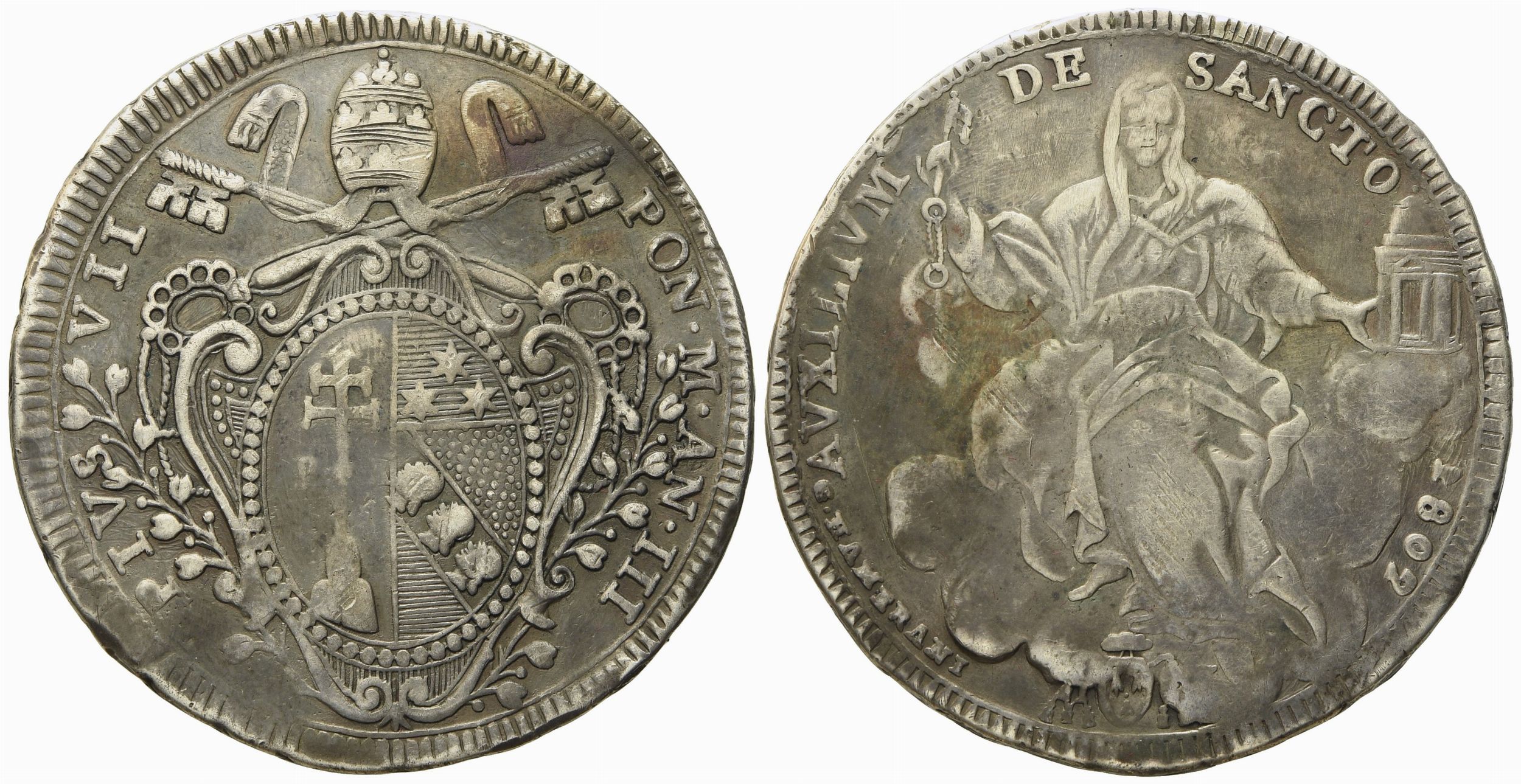 STATO PONTIFICIO. Roma. Pio VII (1800 - 1823). Scudo 1802, anno III. Ag (g 25,84; [..]