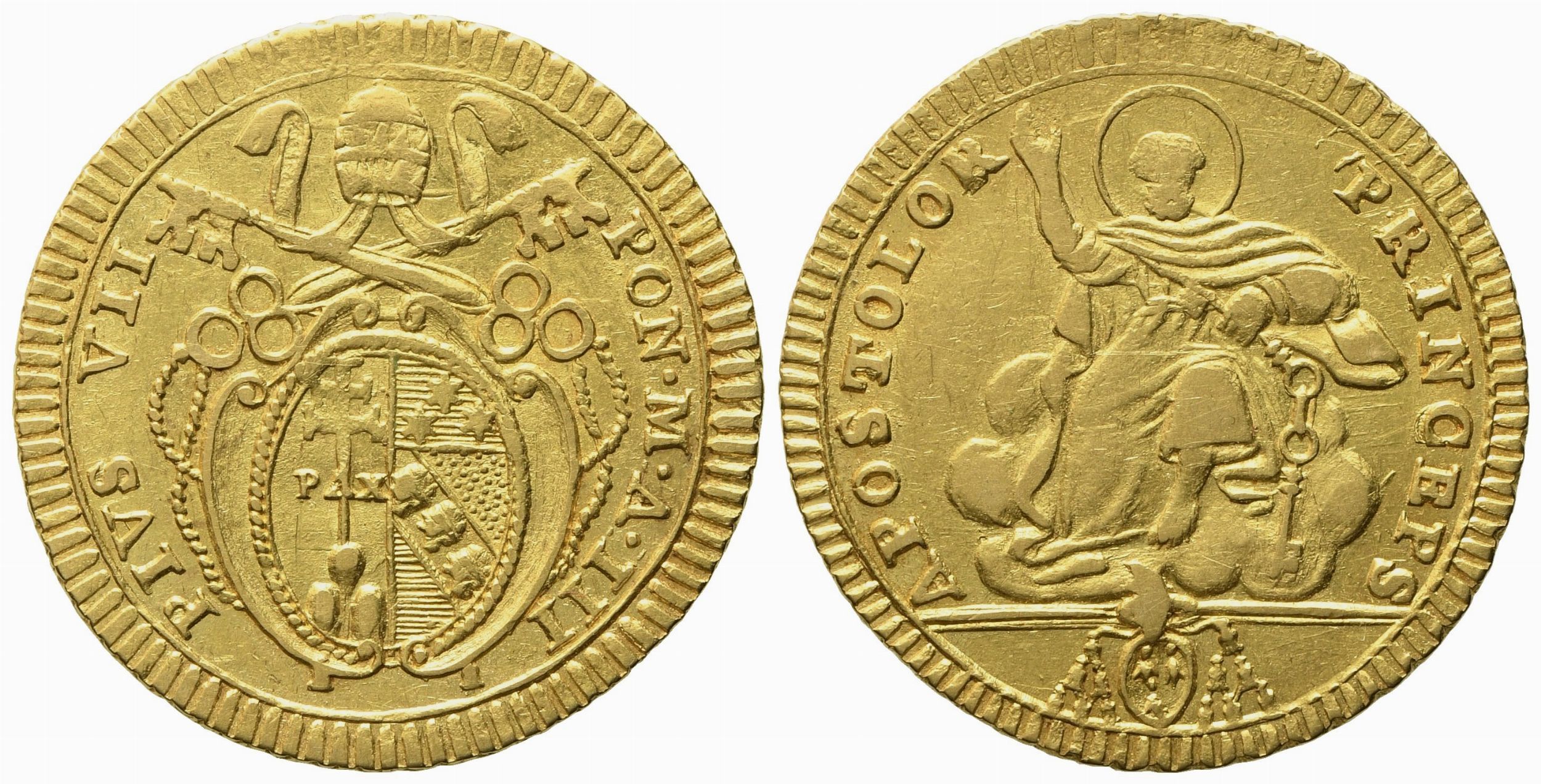 STATO PONTIFICIO. Roma. Pio VII (1800-1823). Doppia, anno III. Au (5,42 g; 23 mm [..]