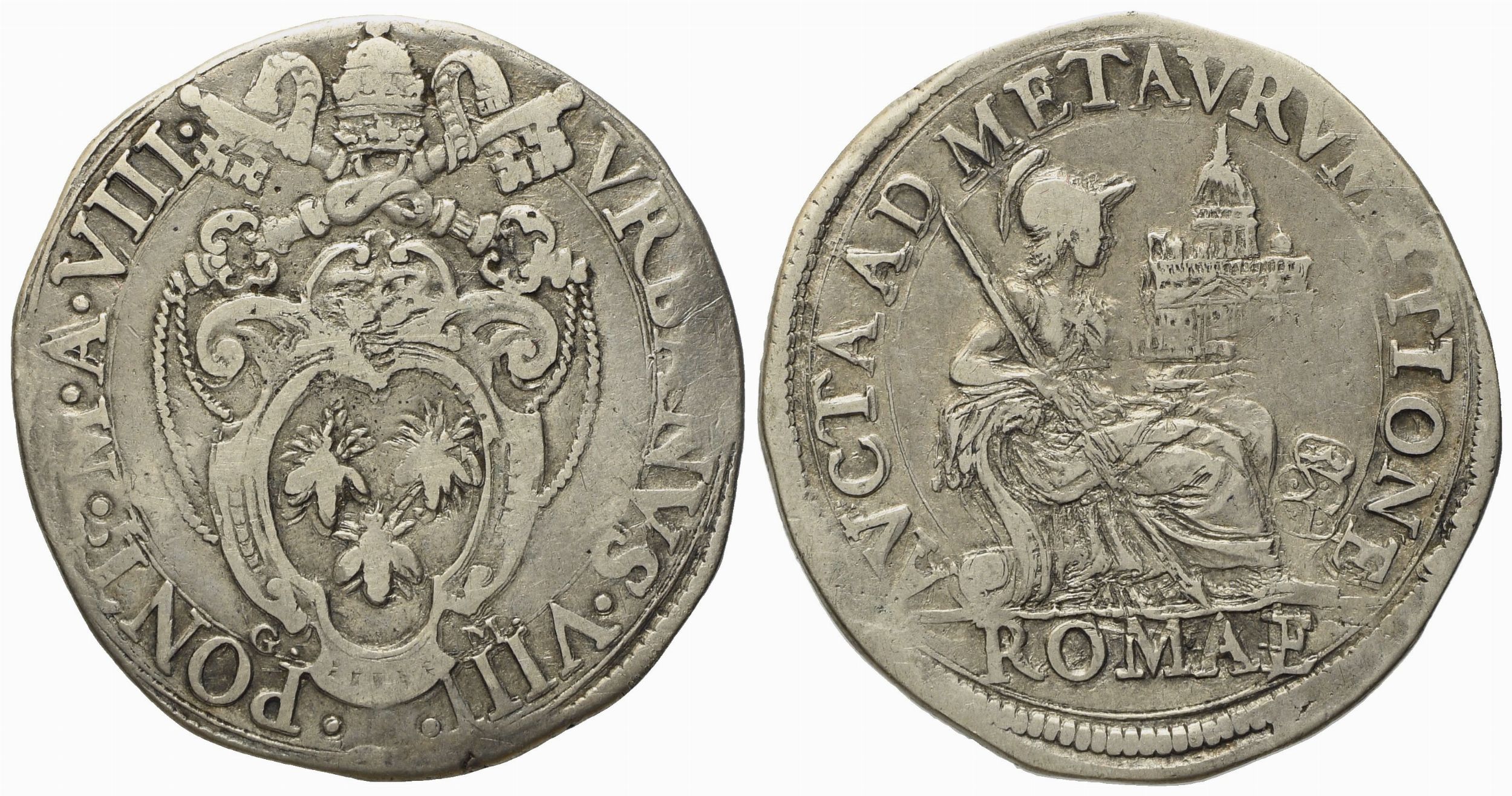 STATO PONTIFICIO. Roma. Urbano VIII (1623 - 1644). Testone, Anno VIII. Ag (9,52 [..]