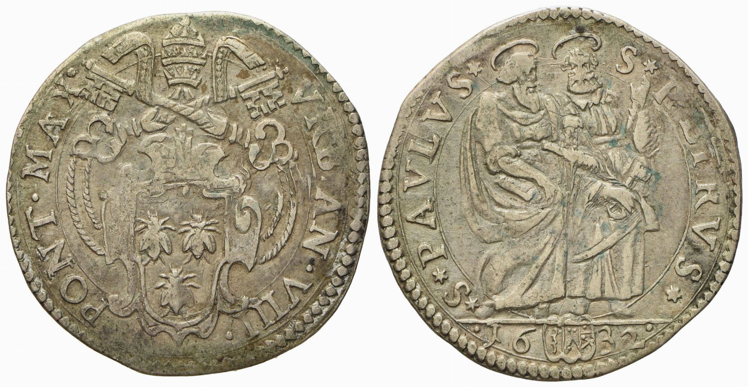 STATO PONTIFICIO. Roma. Urbano VIII (1623 - 1644). Giulio 1632. Ag (3,04 g; 25,6 [..]