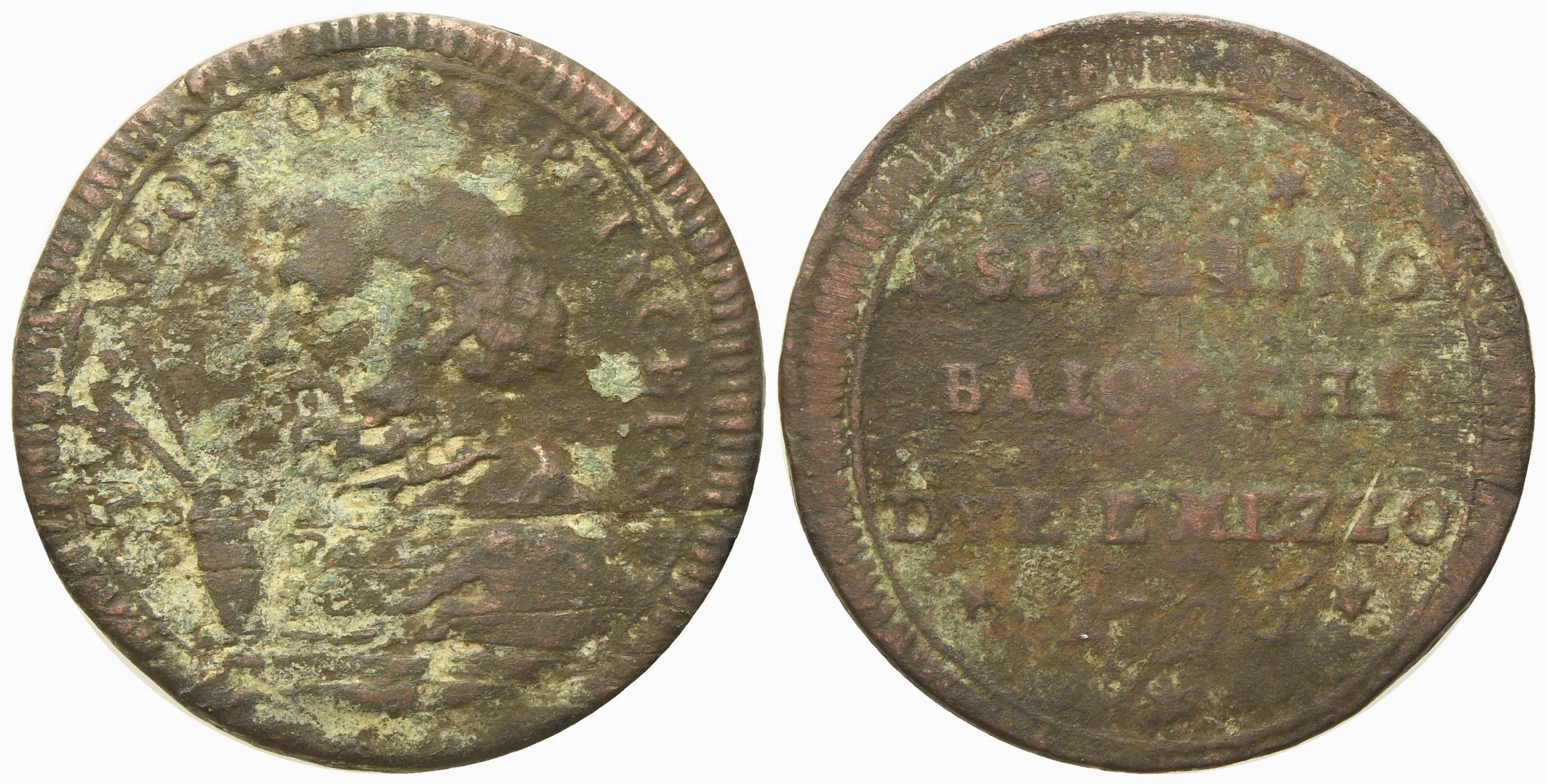 STATO PONTIFICIO. San Severino. Pio VI (1775 - 1799). 2 baiocchi e mezzo 1796. [..]