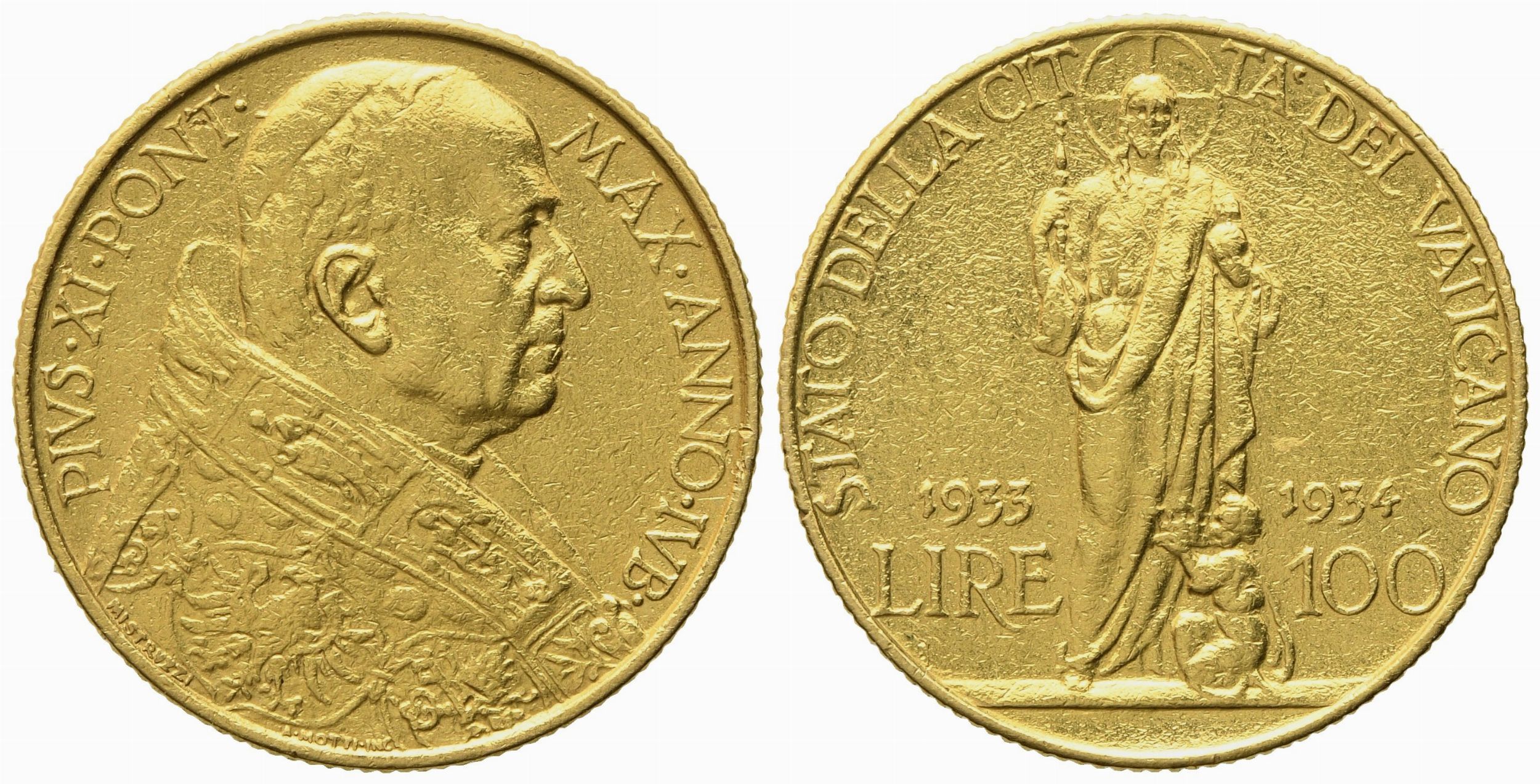 VATICANO. Pio XI (1922-1939). 100 lire 1933-1934 Giubileo. Au (8,74 g; 23,3 mm)